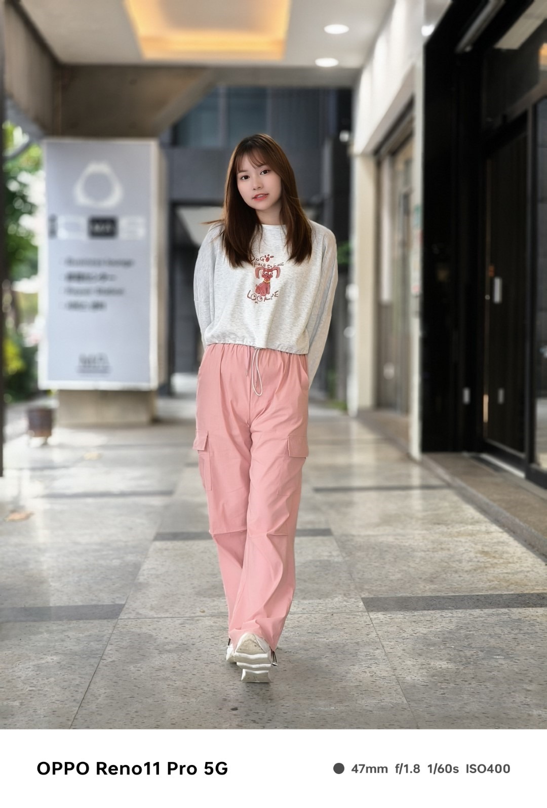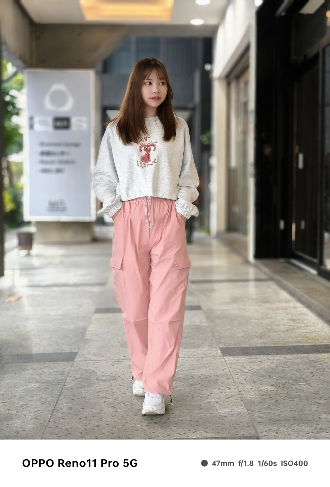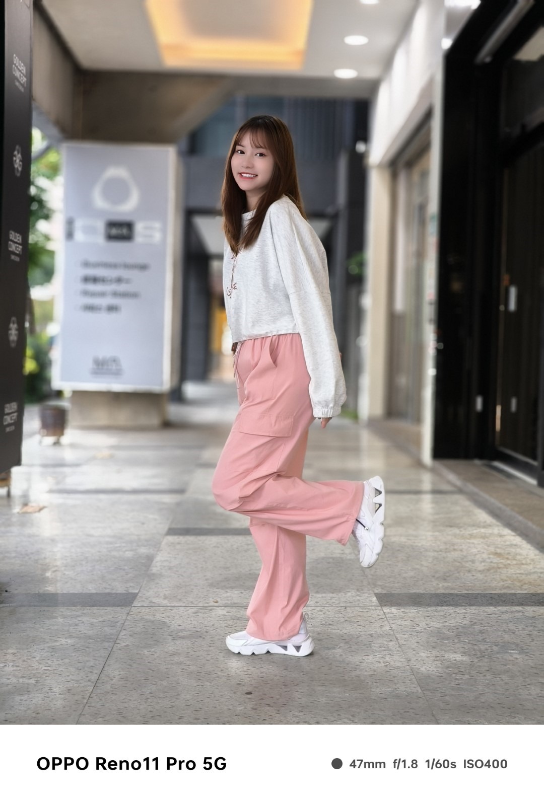 儘管現在很多手機都強調主鏡頭高相素可以提供 2x 無損變焦,不過長焦鏡頭就是長焦鏡頭,『真實的望遠鏡頭景深壓縮效果』是主鏡頭裁切鏡頭所沒有的,這裡可以參考阿輝拍攝人像的實拍,人像拍攝部分 Reno11 Pro 照例請正妹協助拍攝和大家分享效果,Reno11 Pro 這樣 2x 等效 47mm 焦段 + 大光圈的望遠鏡頭,無論真實景深還是焦段的壓縮感都是截然不同的表現,而且這個焦段在專業攝影中被稱為黃金焦段,能夠拍出最接近人眼所見、不容易變形的人像。