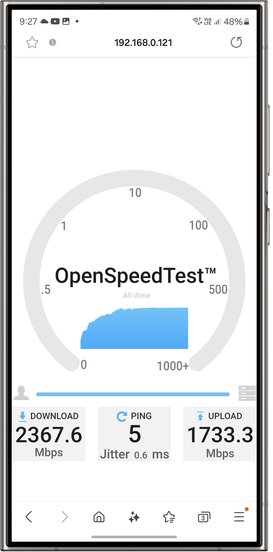 OneUI 6.1 似乎拿掉了內建連線速度測試,用其他軟體檢查可以連線到 2882Mbps 速度