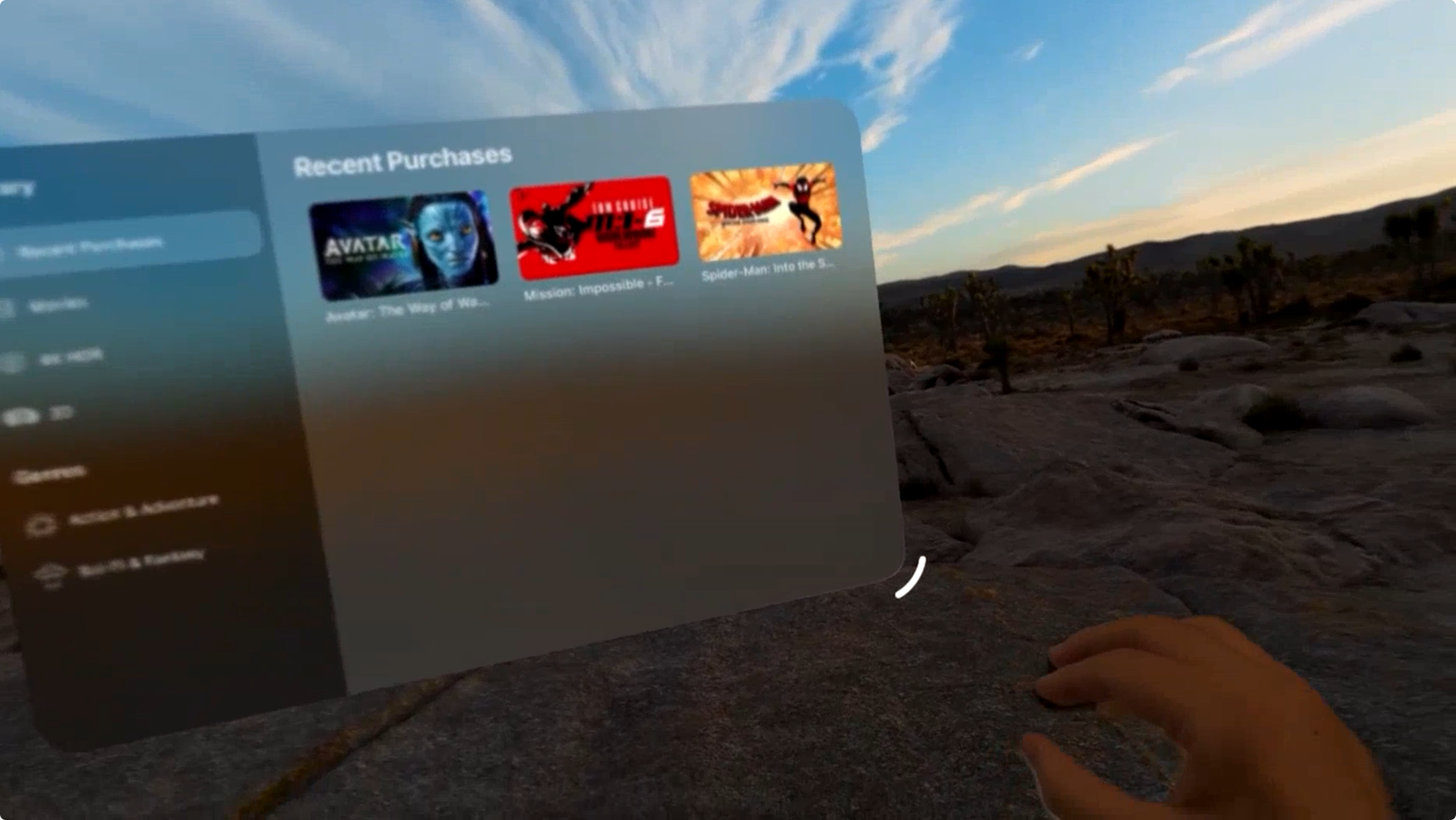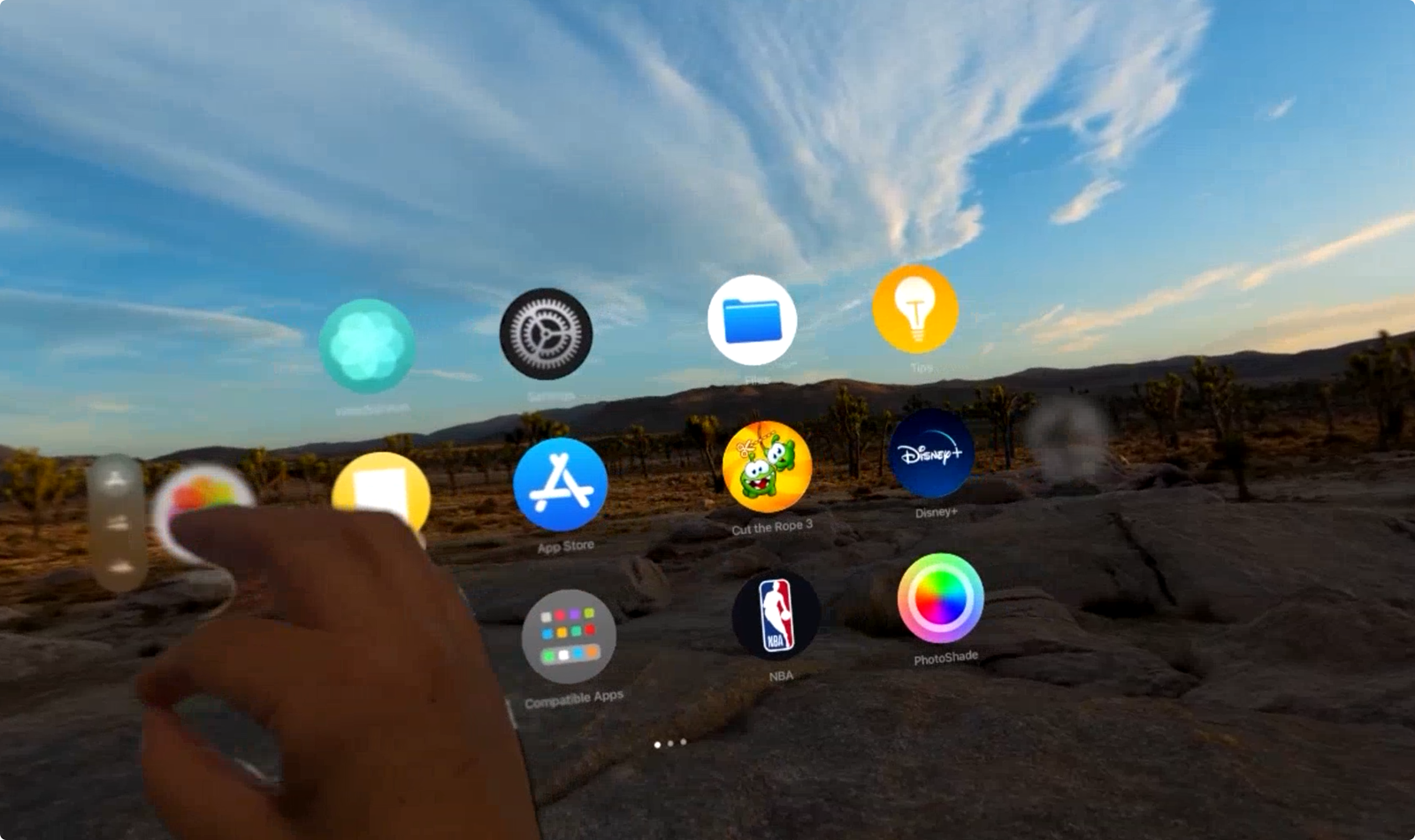 – 眼睛注視選擇項目高亮後,拇指與食指捏合確認執行