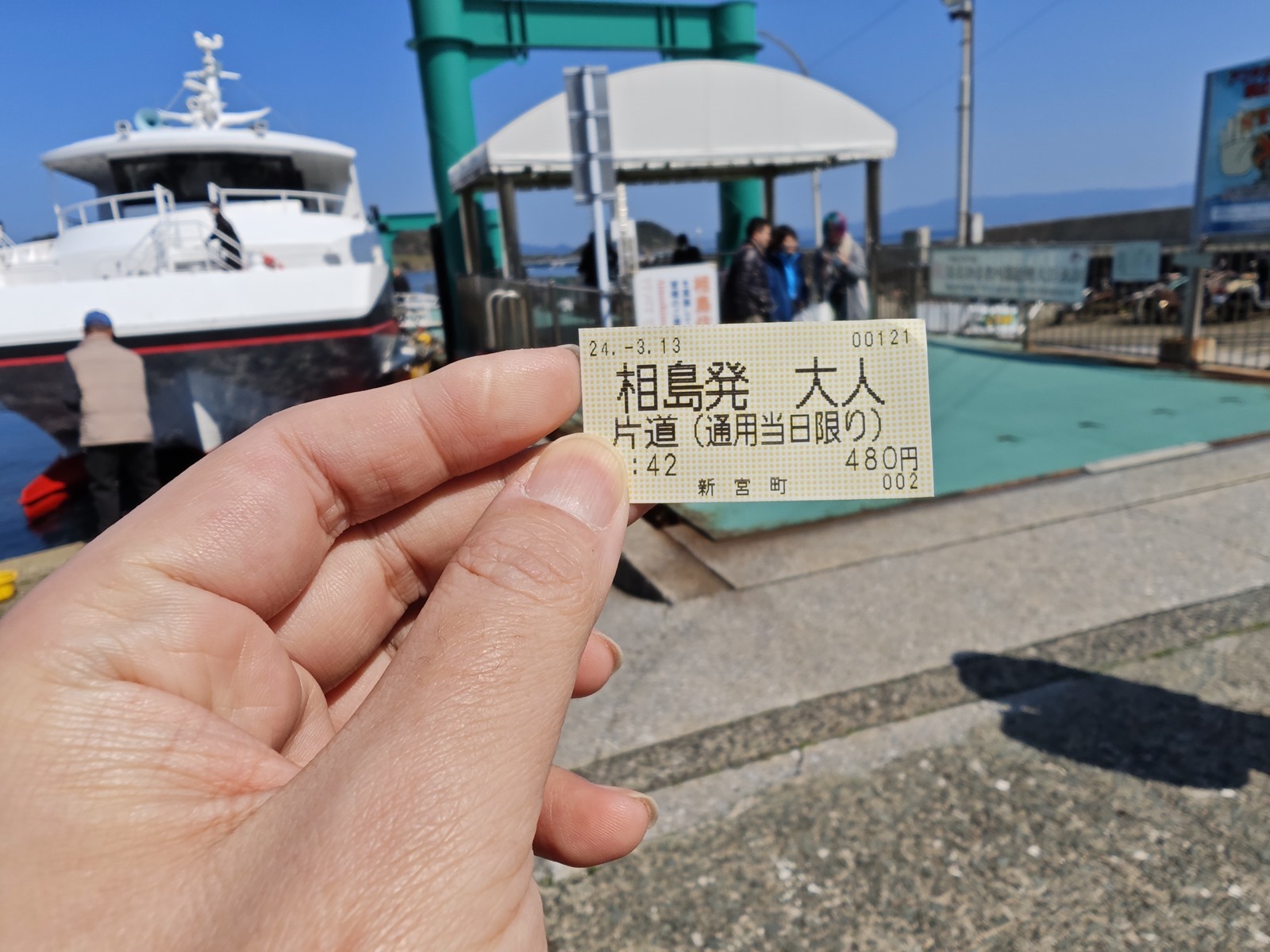 每天來回的渡輪大約都有 5 ~ 6 航班,依照季節會不同,到達島上不用很久大約是 17 分鐘,單程的渡輪費用是 480 日圓;阿輝這一次是抓 11:30 的船班去,13:50 的船班返回