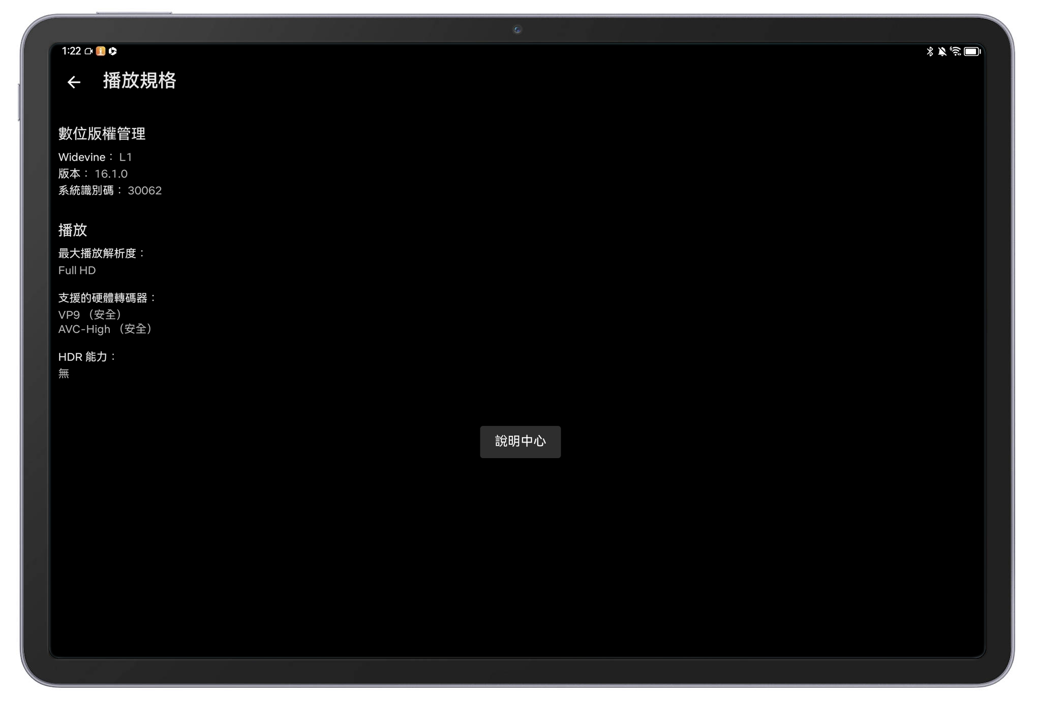 - Netflix 完全沒問題!這比較特別要說以往其實難搞的就是 Netflix,在 MatePad 11.5 上也完全可以使用,並且除了可以正常安裝正常播放之外,檢測播放支援也對應 L1 等級,也就是可以正確支援高解析度(拍手)