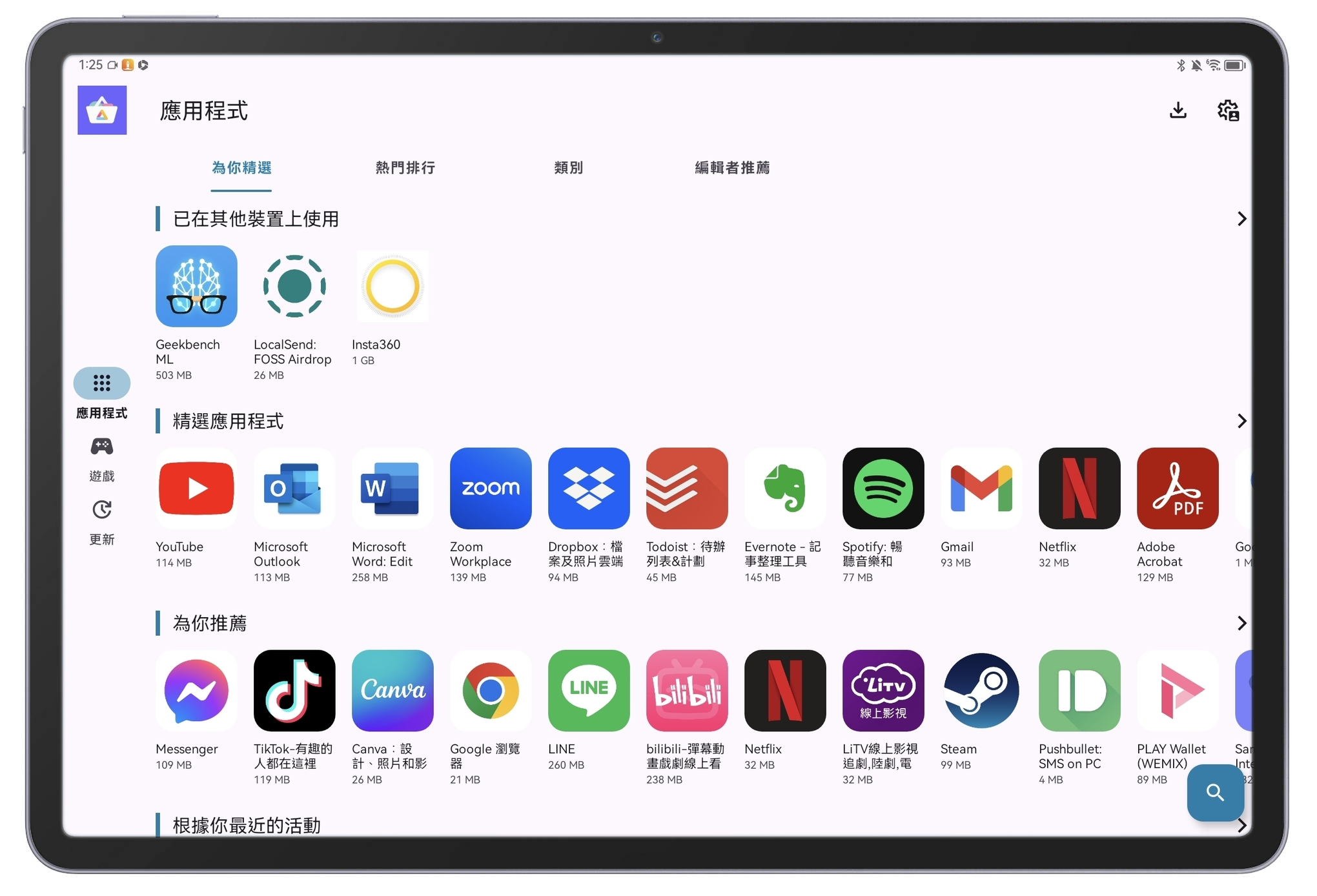 第一次也會有一些建議安裝的遊戲跟程式,遊戲就大家看看自己有沒有興趣,或是也可以這裡就直接跳過,後續在依照自己的需求輸入關鍵字搜尋安裝即可