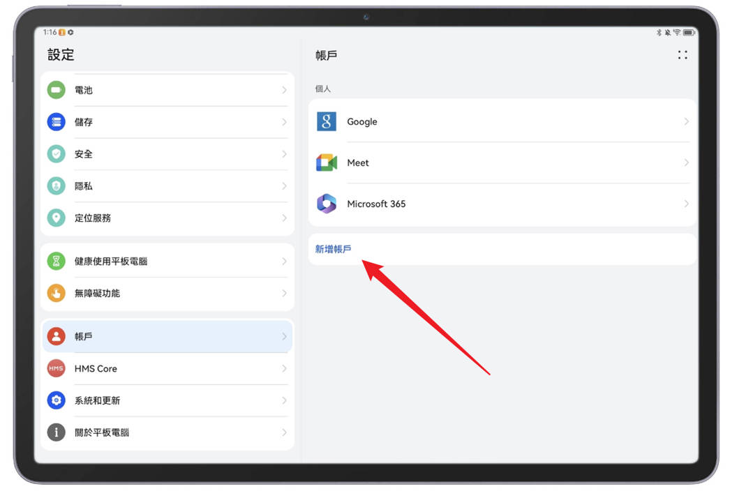 往下捲動找到『帳戶』,然後點選『新增帳戶』