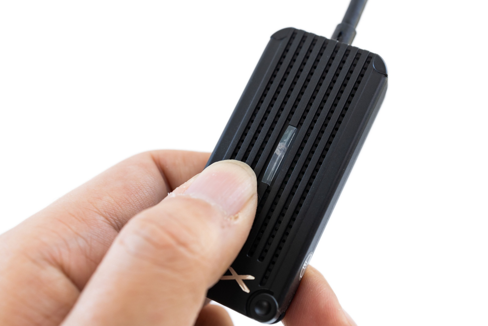 特別要說的是 WTR-1500C 手機發射器上有一個單獨按鍵,使用者在投影時若臨時需要接聽電話或暫停播放,只需按下此按鍵即可快速停止畫面投影,避免不適合內容顯示,這功能除了在家中使用,其實用在公司會議中也是很實用的功能。
