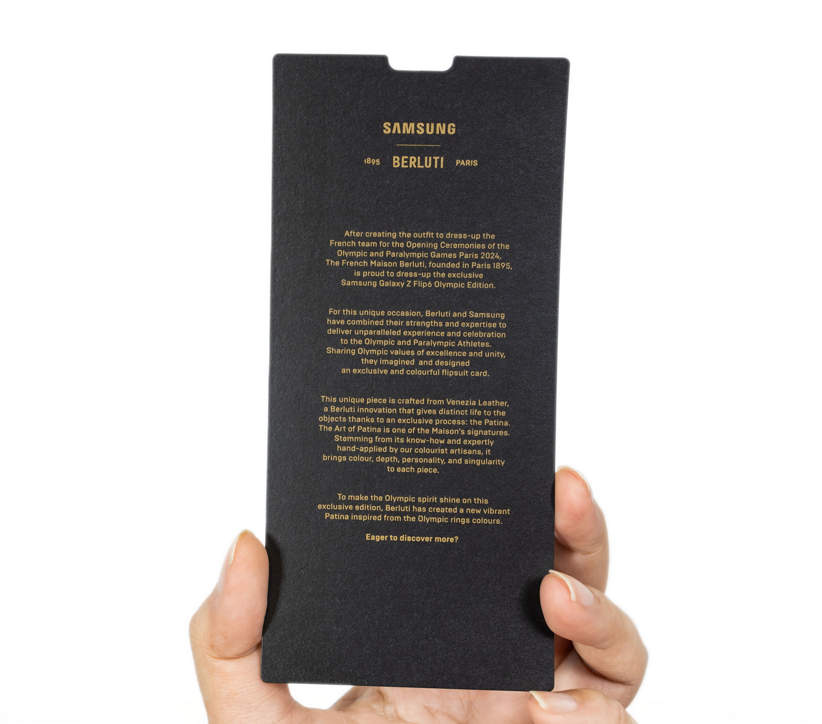 三星其實是多年奧運比賽的贊助廠商,今年則是大手筆提供參加 2024 奧運賽事中全球一萬七千多名的運動員一人一台最新摺疊手機 Galaxy Z Flip6 奧運特別版(Olympic Edition),每台手機並附與 Orange 合作的 100GB 流量的 5G eSIM 與兩年三星全球保固服務,奧運比賽中也頻頻出現手拿奧運版本 Z Flip 6 自拍的眾優秀運動員身影