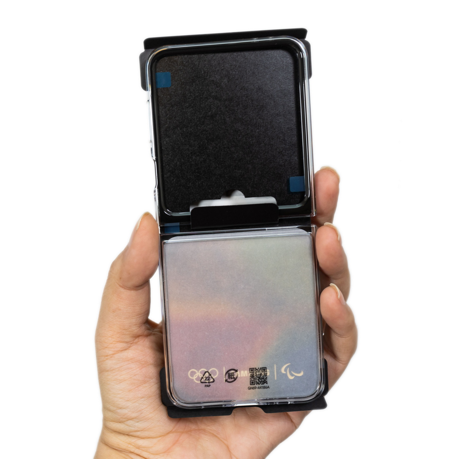阿輝手上也有一般版本的 Z Flip 6 (雲海藍),其實如果看內盒設計就是相同的風格再加上奧運的色彩線條要素