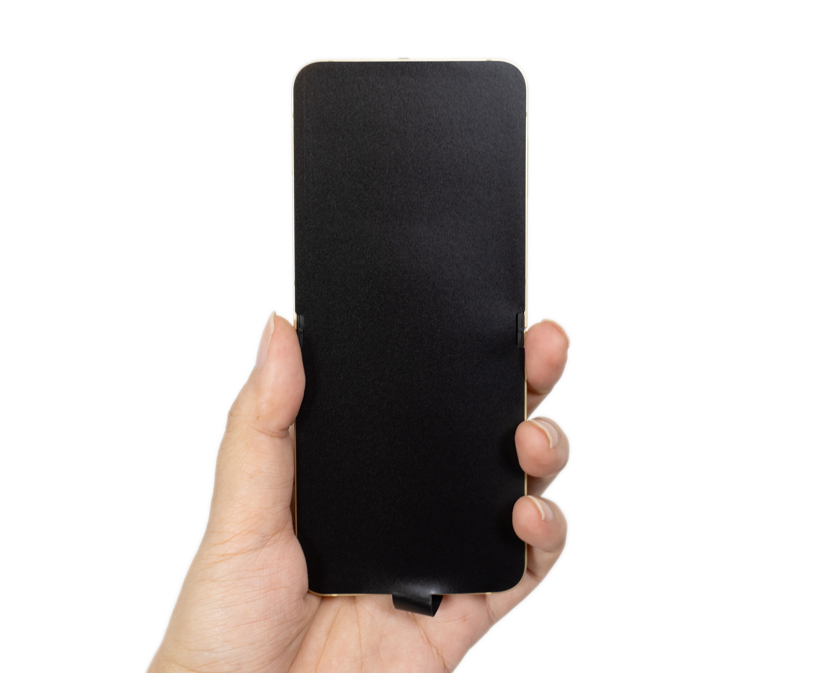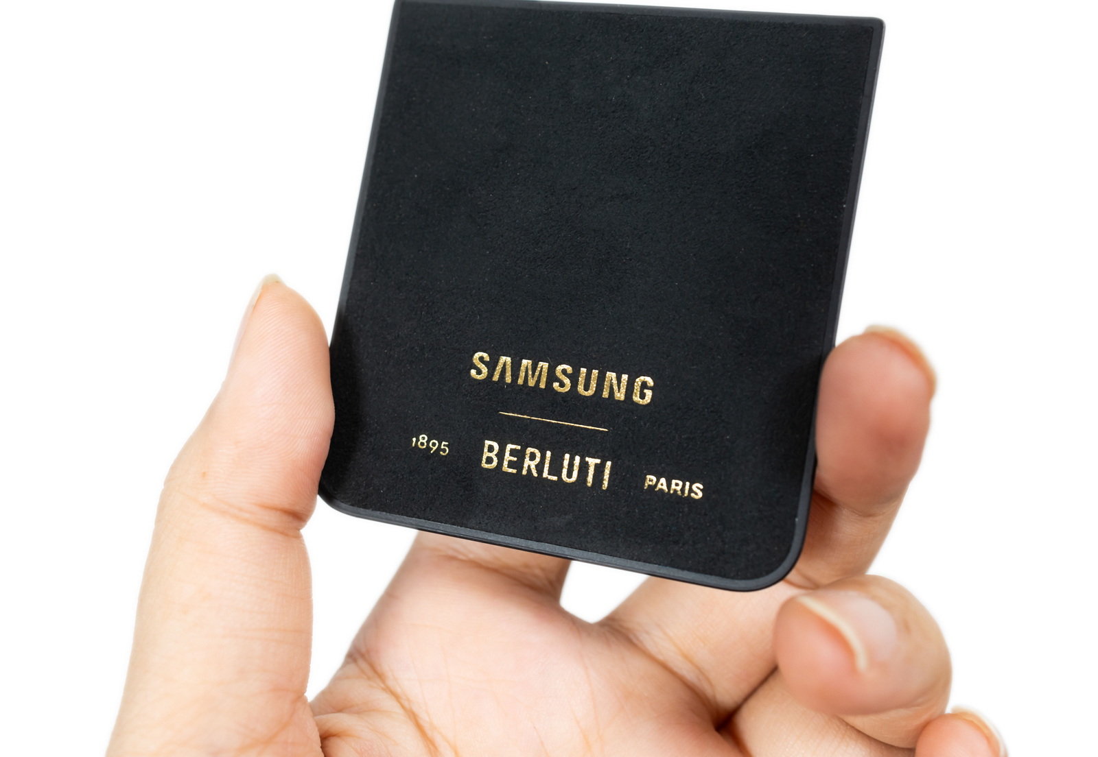 背蓋摸起來會有點像是皮革的手感,官方表示保護殼採用巴黎精品男裝品牌-Berluti 所研發的 Venezia 皮革材質(應該也是素皮材質),不過下方應該是燙金字樣,看網路上圖片日常使用可能會有掉字的可能