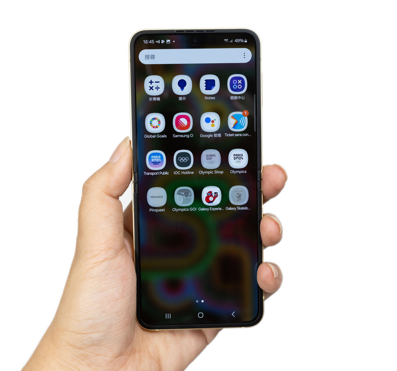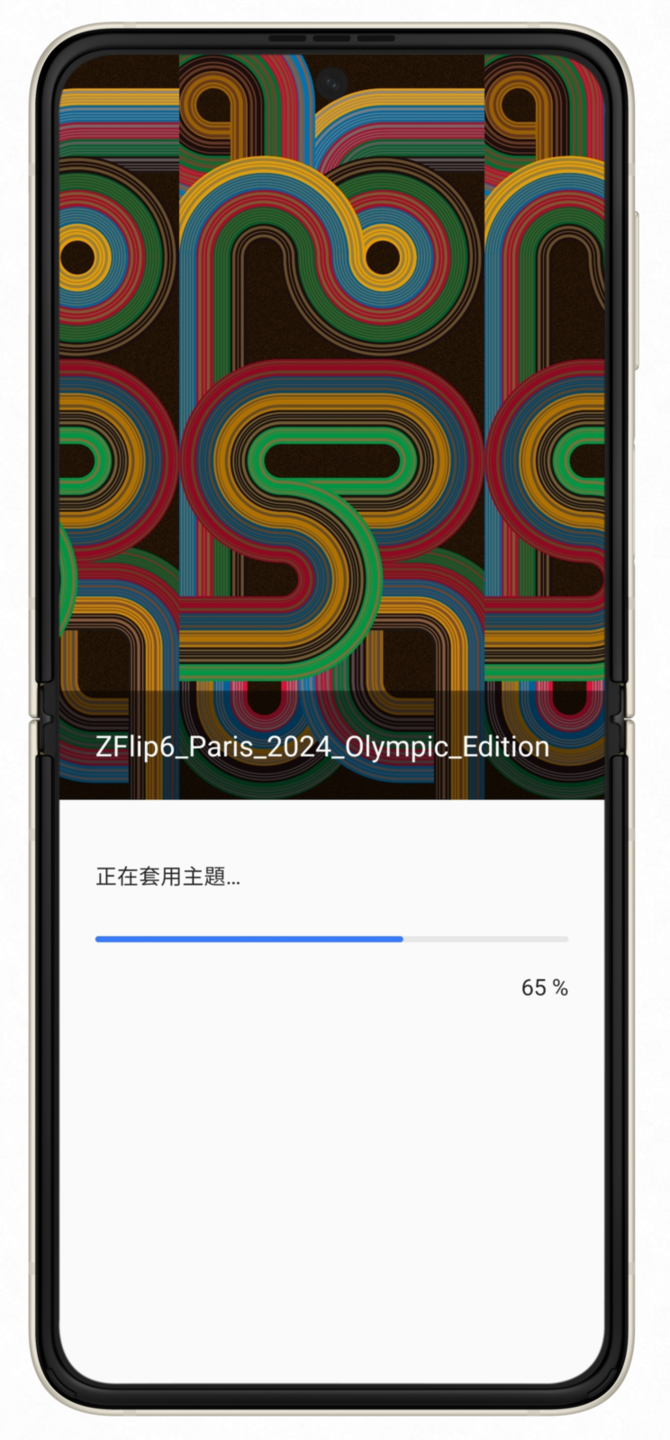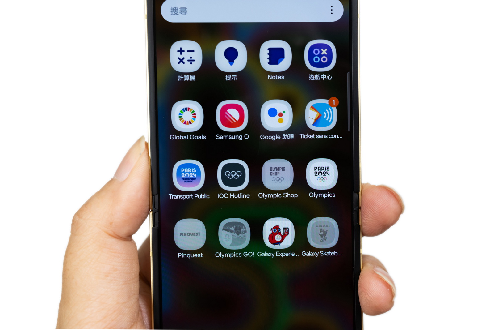 輕薄小巧又有大螢幕就是摺疊手機的優點,第一次開機後當然也會預裝奧運的相關 APP 與專用主題,包含色彩、桌布、動畫封面、圖示都有一定程度的客製化,誠意十分不錯