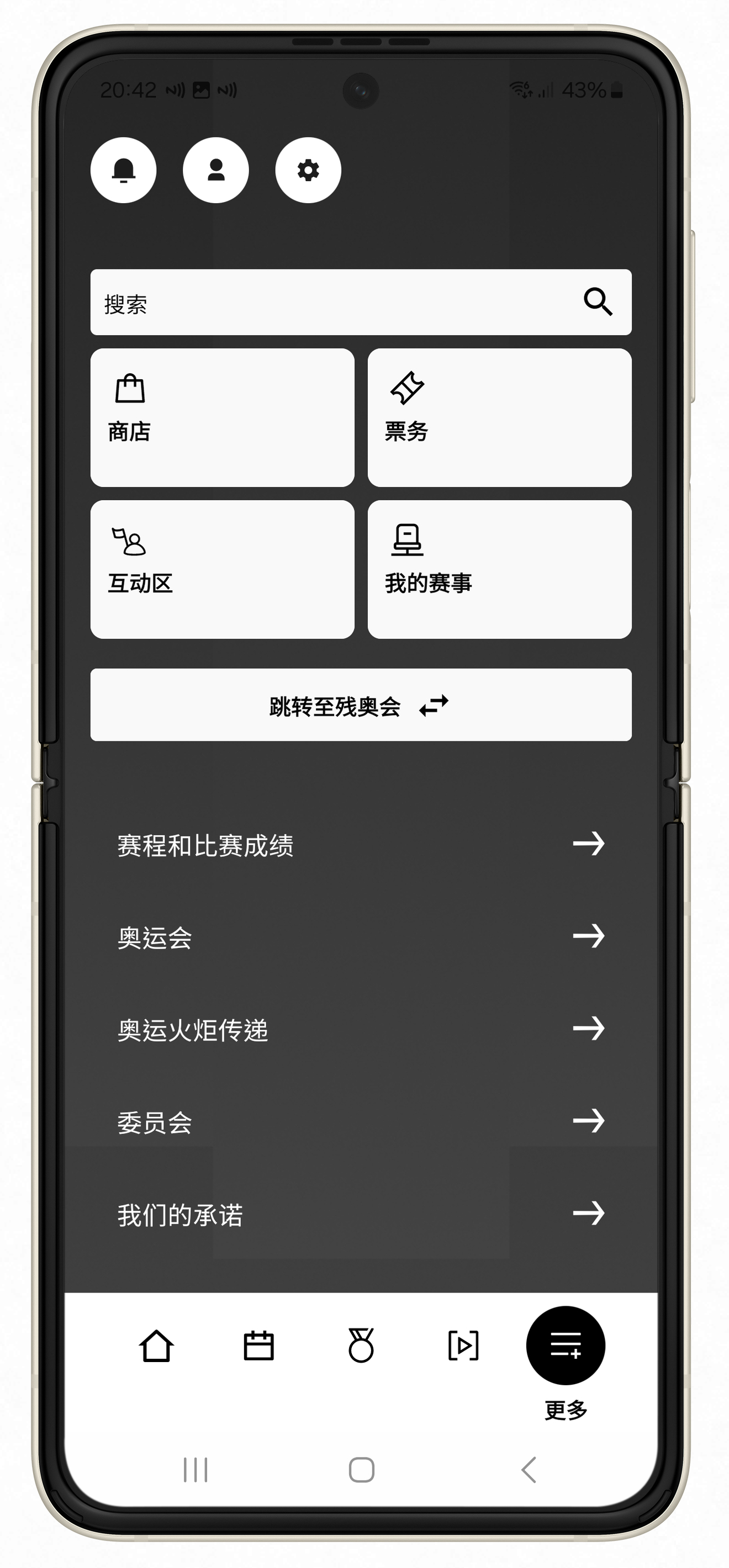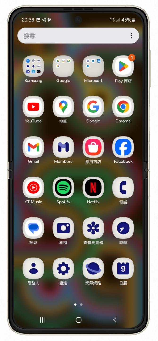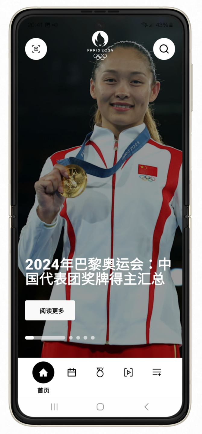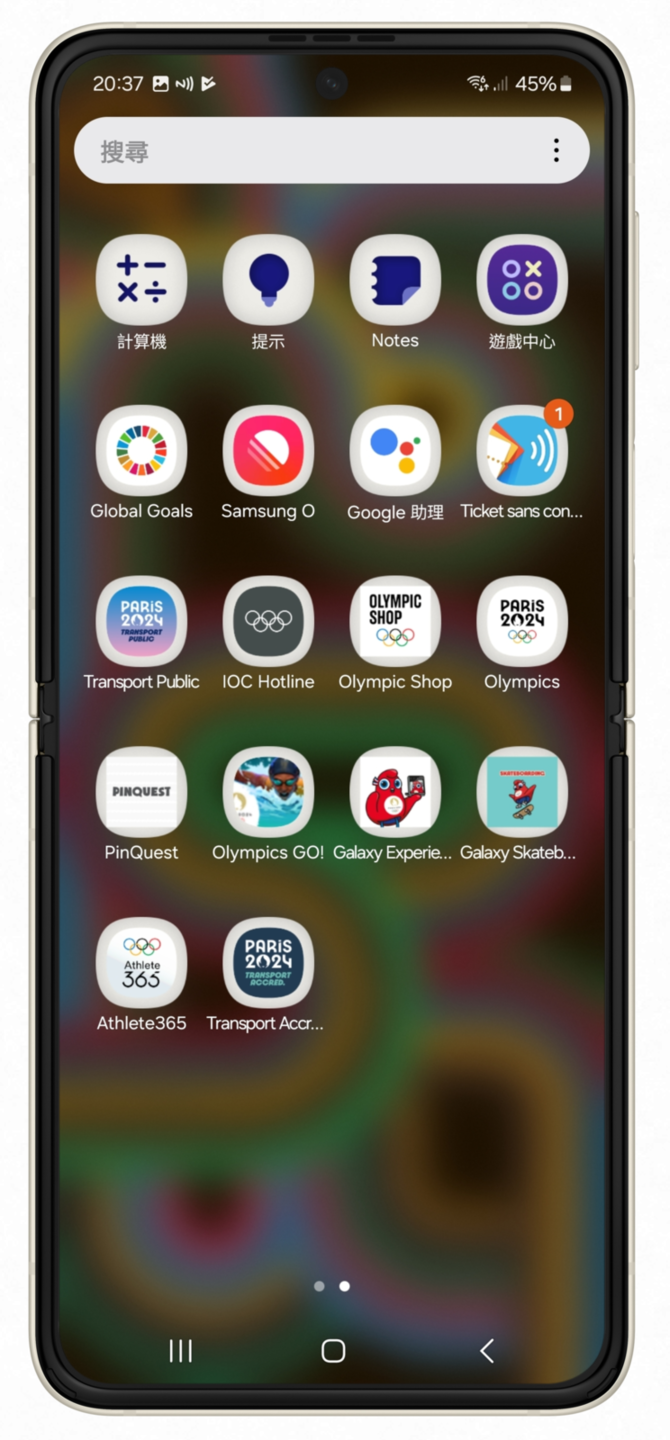 輕薄小巧又有大螢幕就是摺疊手機的優點,第一次開機後當然也會預裝奧運的相關 APP 與專用主題,包含色彩、桌布、動畫封面、圖示都有一定程度的客製化,誠意十分不錯