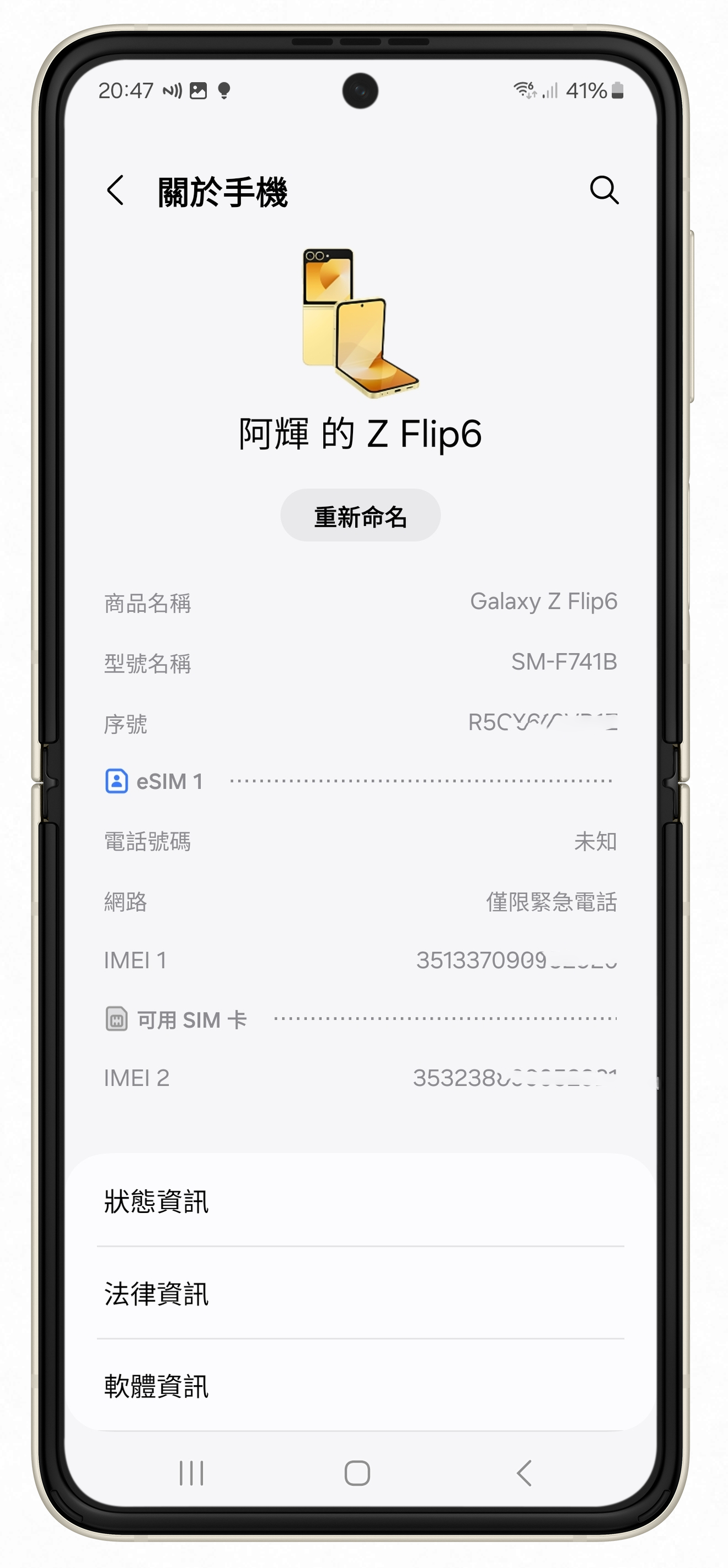 奧運版本的機器規格方面,型號是 SM-F741B,- 規格是 12GB + 512GB 版本,雙 5G 單卡槽 + eSIM 組合