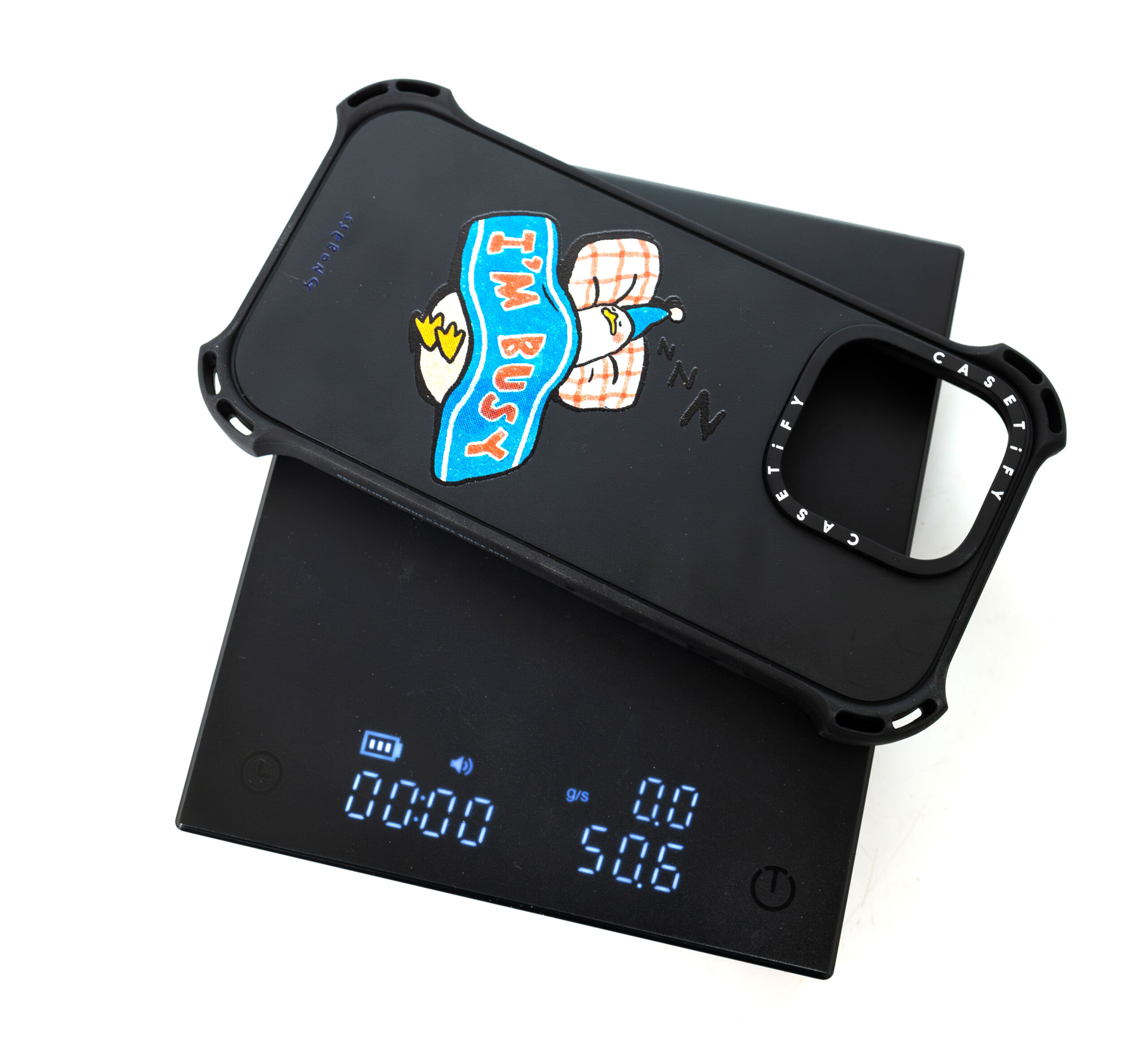 CASETiFY MagSafe兼容終極防摔手機殼雖然提供了足以應付日常生活的抗摔能力,但手機殼本身也還是相當輕薄不厚重,實色印花的這個手機殼,阿輝實際測良也只有 50 克左右的重量,裝上手機後也能一樣保持輕巧。