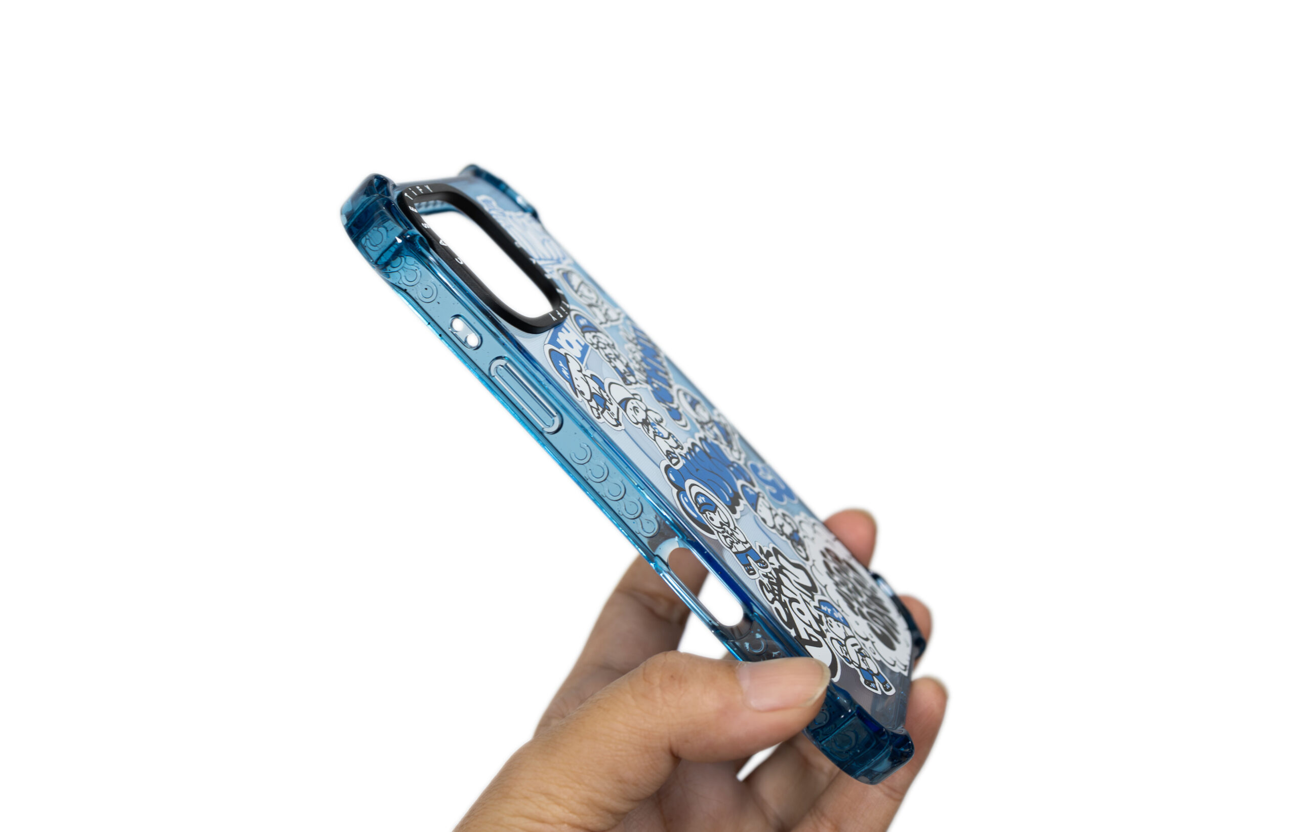 手機殼內側的部份從這款透明款式的手機殼裡可以清楚的看到CASETiFY 研發的先進防護技術TesseLock™ 專利技術的C 型鎖鍊紋路,這個C 型鎖鍊紋路結購有助於分散外力,當手殘黨不小心把手機意外掉落的時候能夠有效吸收並分散衝擊力來達到保護手機的效果,TesseLock™ 技術也讓手機殼具備更好的穩定性和耐用性,特別適合經常摔落手機的用戶。