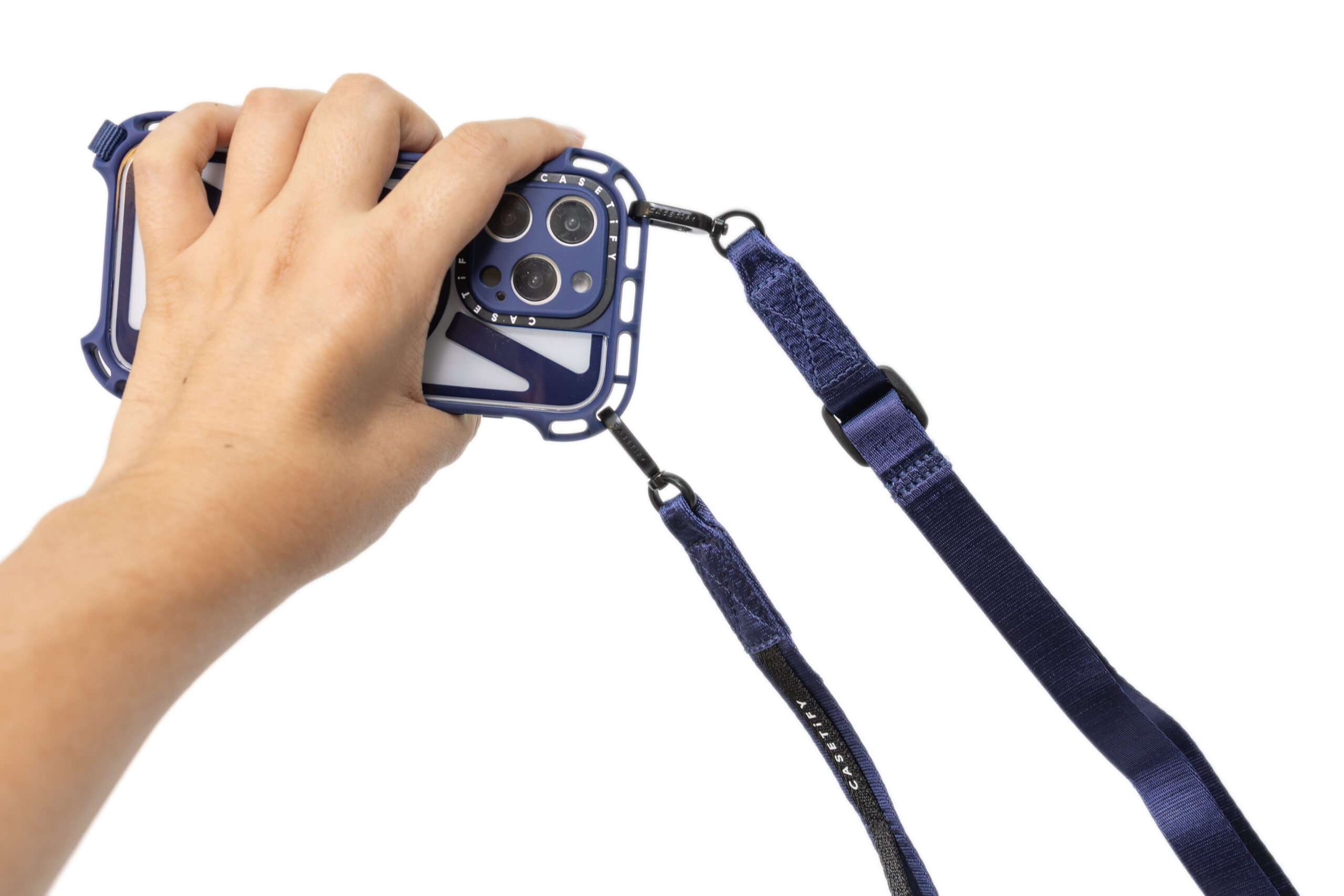 此外CASETiFY今年也推出了Ultra 終極扣環和Ultra 終極多功能背帶,可以搭配升級後的Ultra 彈力保護角做使用!Ultra 終極多功能背帶採用高強度鋁製扣環與十字加固縫製的耐用尼龍編織帶,確保長期使用的堅固性與耐用性。背帶總長可自由調整長度(116-139 公分),斜跨肩背使用,解放雙手完全沒有問題!甚至也能輕鬆轉換為腕帶(21 公分),像是出門開會或穿著比較正式的服裝時改成掛在手腕上使用,都不影響當日穿著搭配;所謂可長可短,就是一條背帶能滿足你不同需求。
