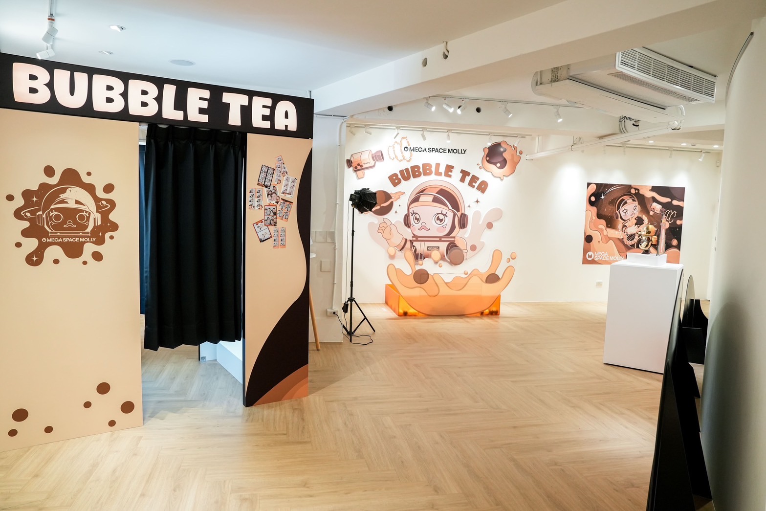 為了慶祝這次台灣限定款的發表,POP MART 在西門町旗艦店 4 樓推出期間限定特展,從今日起展至 10/13 。展區佈滿珍珠奶茶主題素材,並設有大型珍奶打卡牆和拍貼機等互動裝置,吸引粉絲前來打卡拍照。此外,還特別設立了「網美打卡區」,提供可愛手拿牌和大背板,讓民眾留下紀念,融入泡泡魔力的氛圍。
