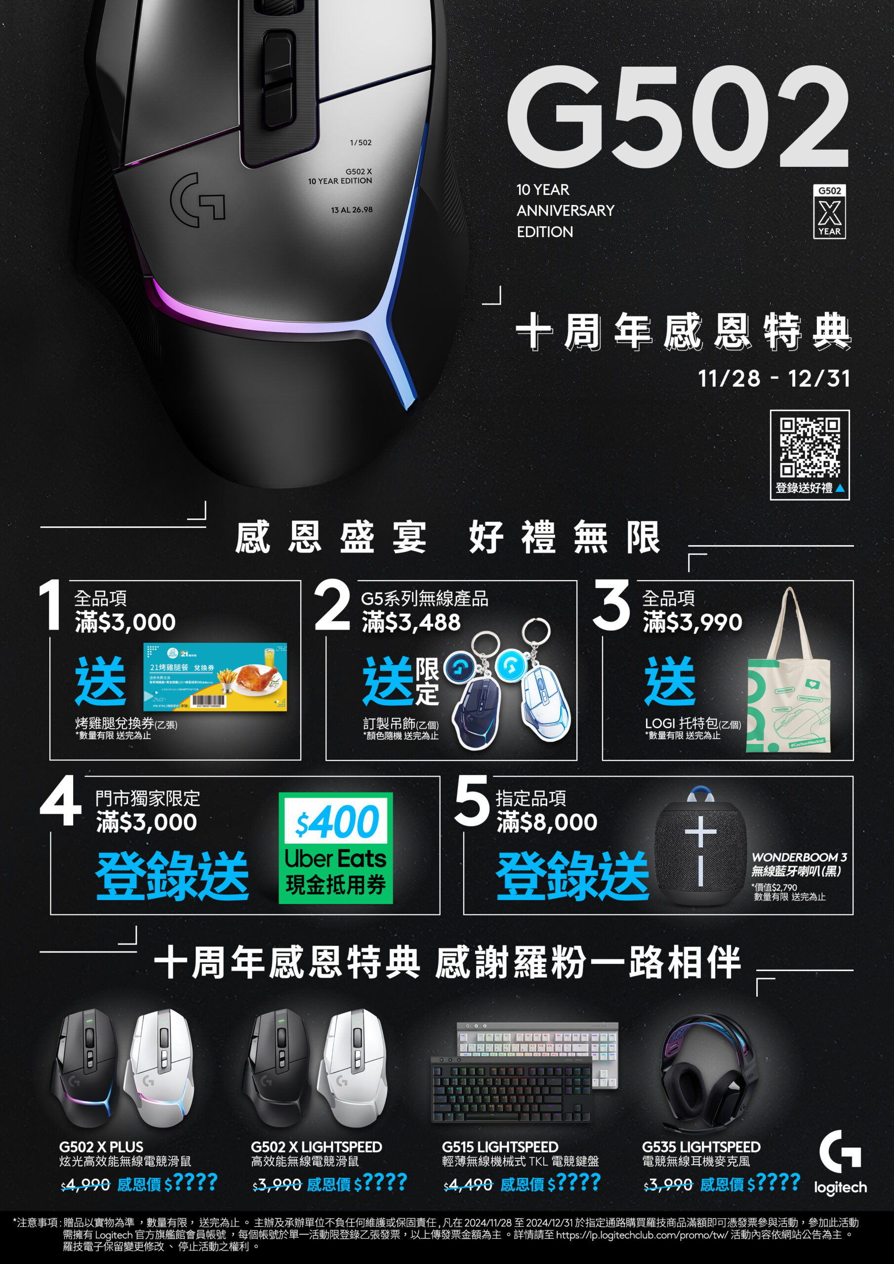 更多優惠活動請至:https://store.logitech.tw/pages/g502-10th 。