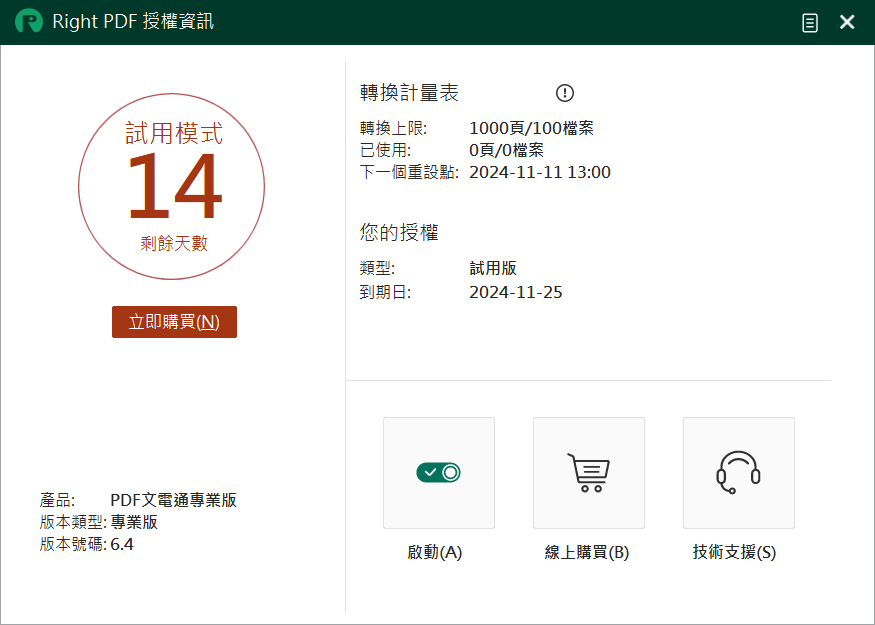 個人 14 天試用:PDF 文電通 6 專業版試用下載連結 ( 14 天試用免費)