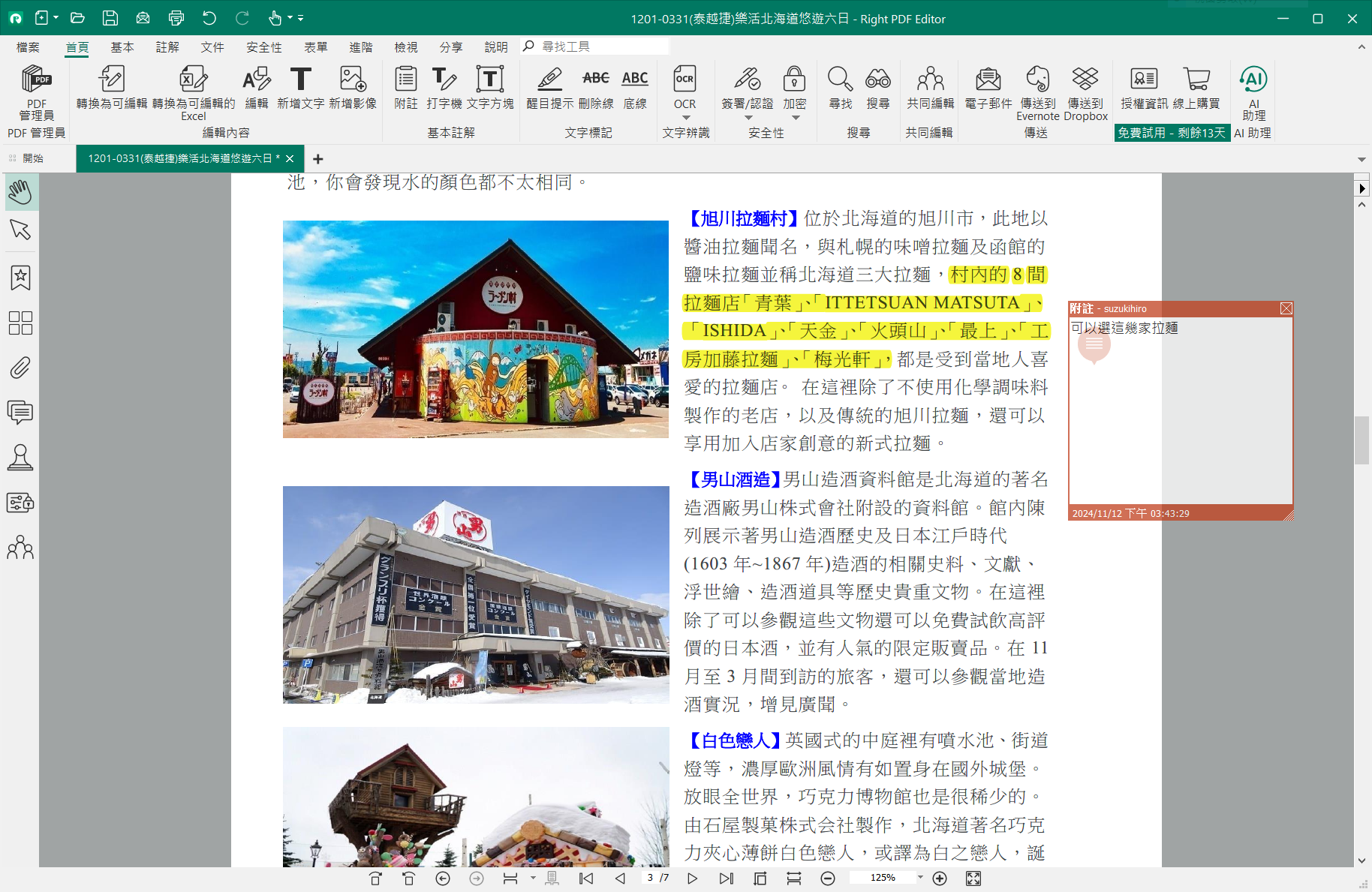 其他還有像是醒目提示、附註等功能,都是我和編輯、廠商來往修改都會使用到的功能,基本上 某 A 家有的功能它都有,介面整合的更方便一般使用者來使用,並且還有十四天免費試用期,喜歡可以訂閱,現在 某 A 家標準版一個月是 420 台幣,Pro 版則是要 641 台幣,棣南 PDF 文電通專業版訂閱制每個月最低是 325 台幣,長久下來就差不少費用,企業用戶能使用終端伺服器授權,個人用戶也能直接買斷永久授權 5800 台幣而已,如果你正在被永無止境的訂閱制困擾的話,推薦棣南 PDF 文電通專業版給你。
