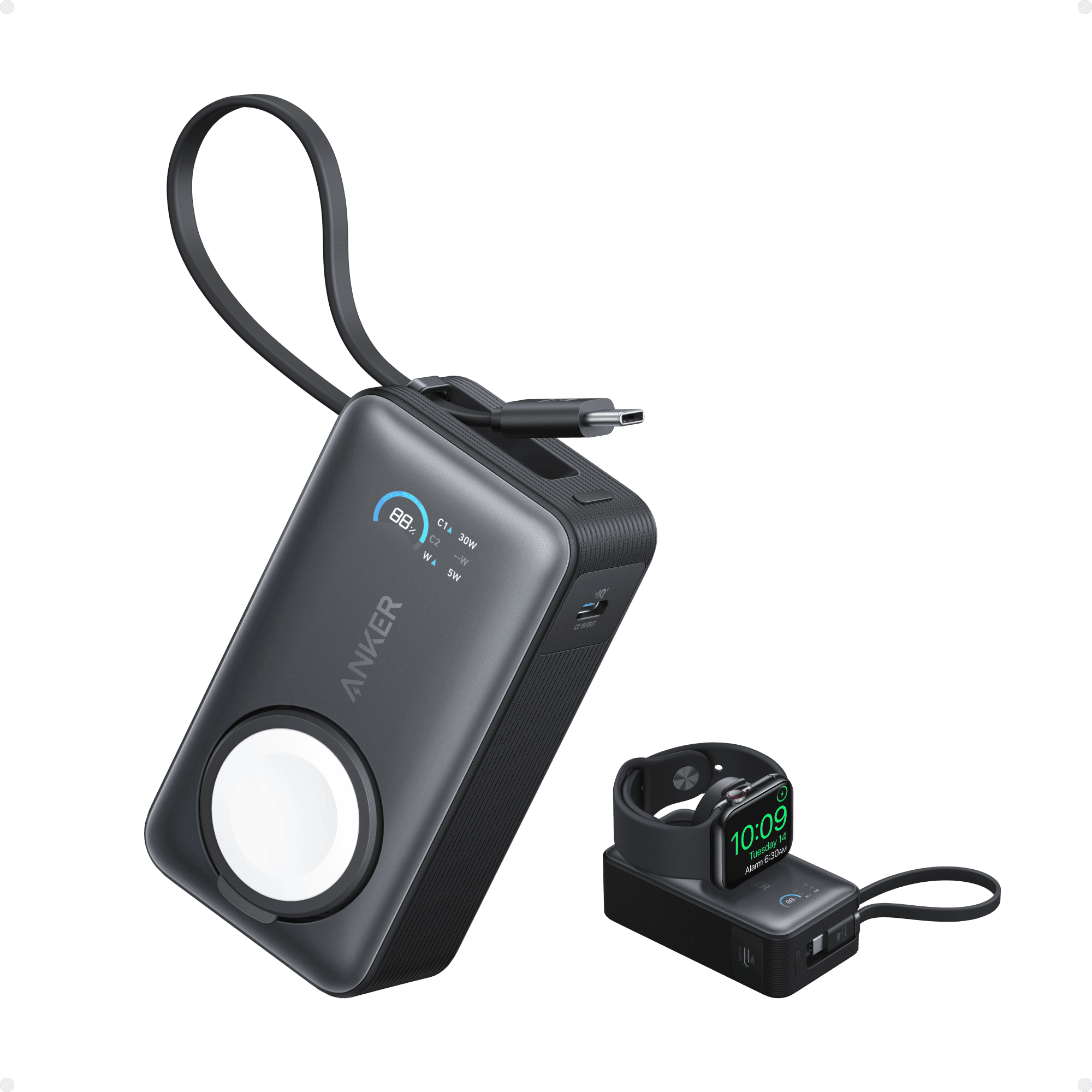 專為 Apple 生態系設計的「A1657 ANKER MagGo 磁吸行動電源 for Apple Watch 10000mAh 35W」,售價 2,690 元,提供 35W 高效充電,能在 20 分鐘內將 Apple Watch Series 10 充至 30% 。內建 USB-C 充電線,無需額外攜帶線材,並支援 30W 自充與邊充邊放功能,適合經常出門在外的 Apple 用戶。