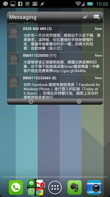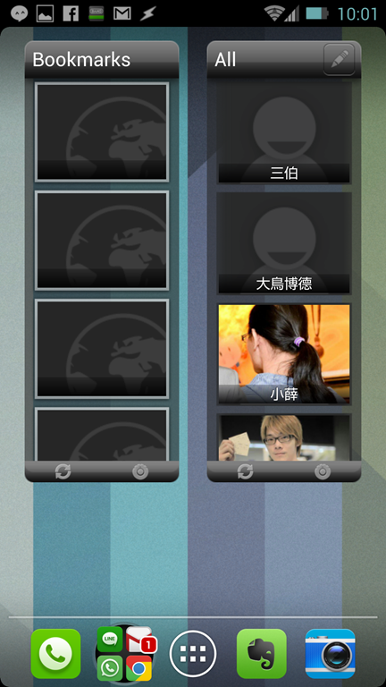 這套 Widget 應該是最像是 HTC Sense 功能性的 Widget,有書籤、行事曆、聯絡人、 Facebook 與 Twitter;當然不可能 100% 一模一樣,不過應該是最接近的了,選擇主題與部分功能需要付費購買 KEY,倒是免費版本可以先用用看,KEY 要 usd 2.9 左右阿輝自己還在考慮,不過免費版已經非常推薦安裝使用。