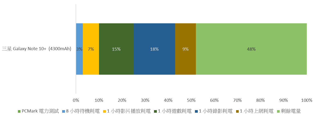 - Galaxy Note 10+ 瀏覽器連續讀取瀏覽 1 小時,實際消耗 9% 電量,剩餘 48% 電量