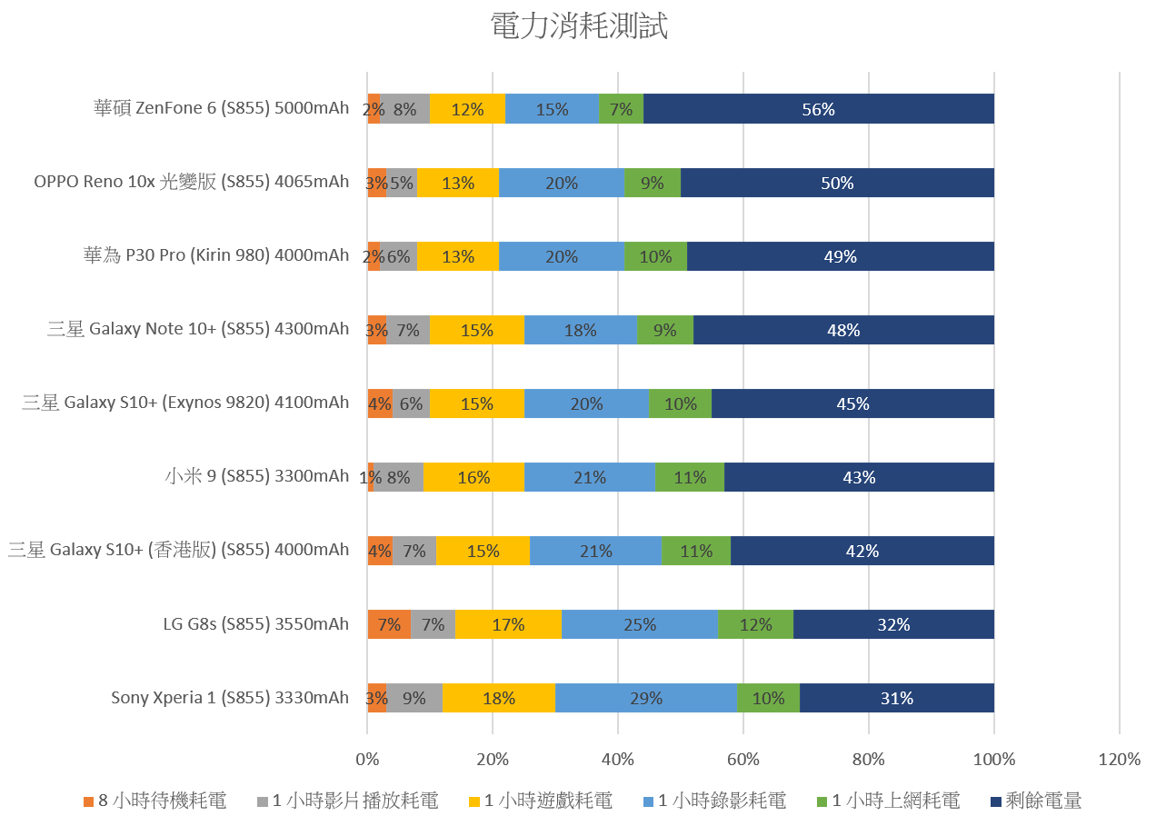 Galaxy Note 10+ 實際模擬電力消耗測試