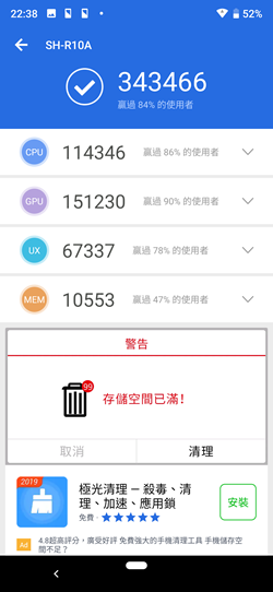 AQUOS R3 採用 S855 處理器與 6GB 內建記憶體的規格配置,更多資料也可以阿輝資料庫 https://reurl.cc/MxdjK ,資料庫中包含超過 200 支以上以上阿輝多年測試的實測數據,可以給大家作為對照參考使用。