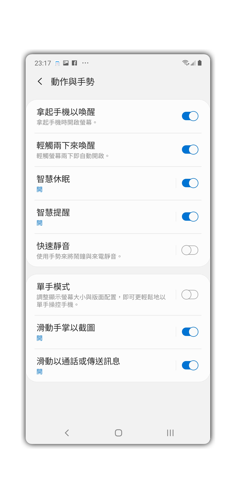 這一次 Galaxy Note 10+ 在按鍵部分取消了 Bixby 按鍵,而是將電源按鍵與 Bixby 按鍵整合在一起,不過要注意的是新的按鍵配置是將音量按鍵與電源按鍵都放在機器左側的設計,其實用了好久的右側電源按鍵突然有點不太習慣,另外電源按鍵可以透過設定指定 Bixby / 電源選單 / 快速啟動相機等個人化設定,另外 Galaxy Note 10+ 在喚醒部分也提供了更多互動喚醒方式,例如手機抬起喚醒、螢幕雙擊喚醒等更直覺的使用方式,阿輝都建議大家可以開啟使用。