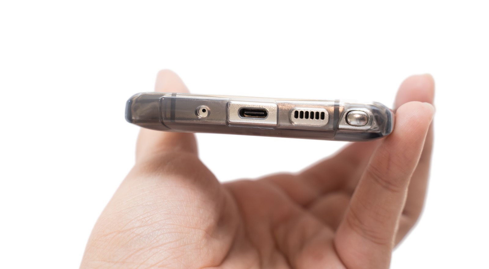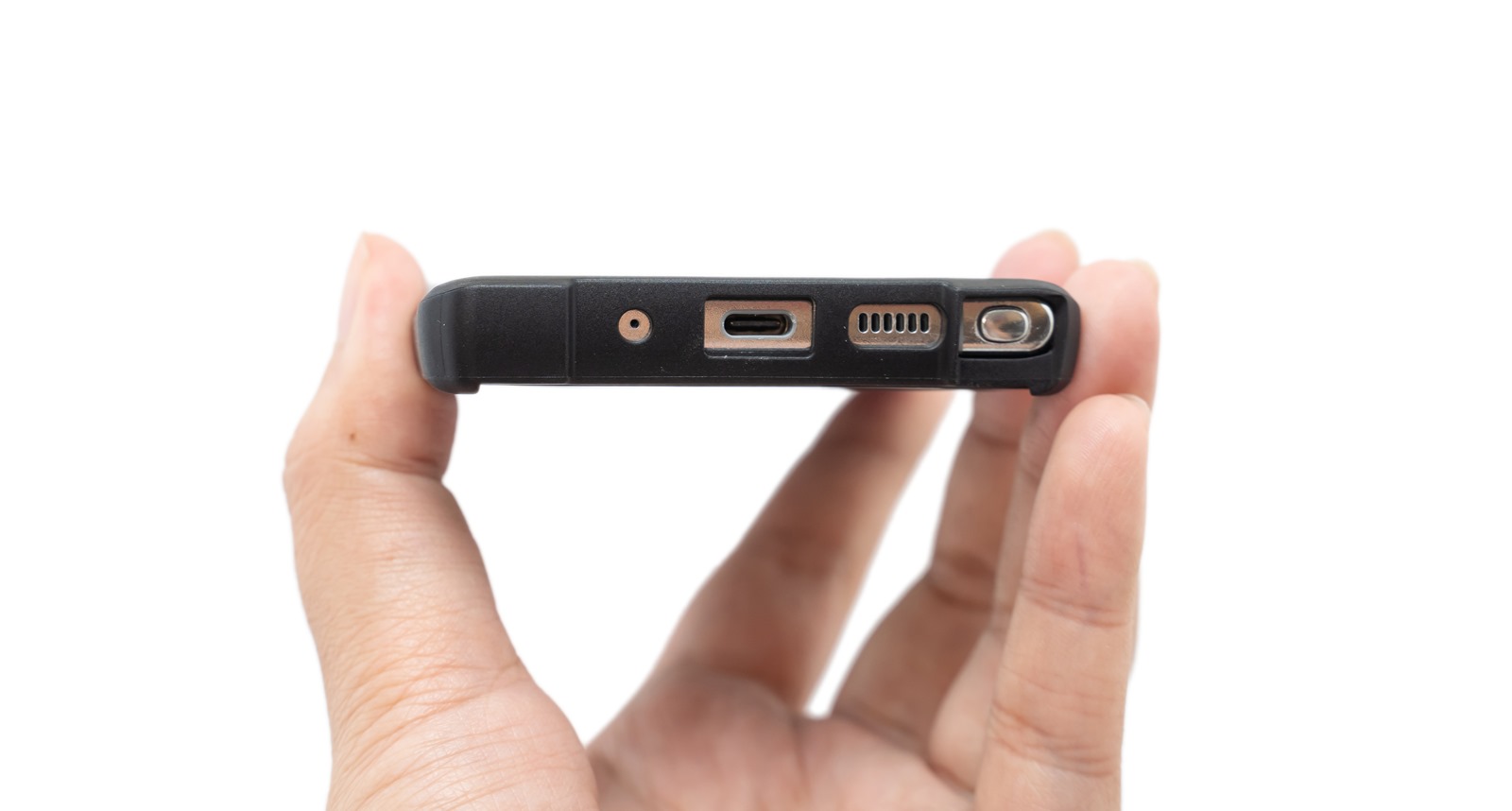 UAG 保護殼所有的連接埠與按鈕處都採用精準孔位確保操作順利無阻,不過儘管說是儘可能開大 Type C 孔位的設計應該是為了讓 Dex 等線材的相容性比較好,不過有些孔方形有些孔圓形,還是讓阿輝強迫症有些不舒服啊啊啊啊~