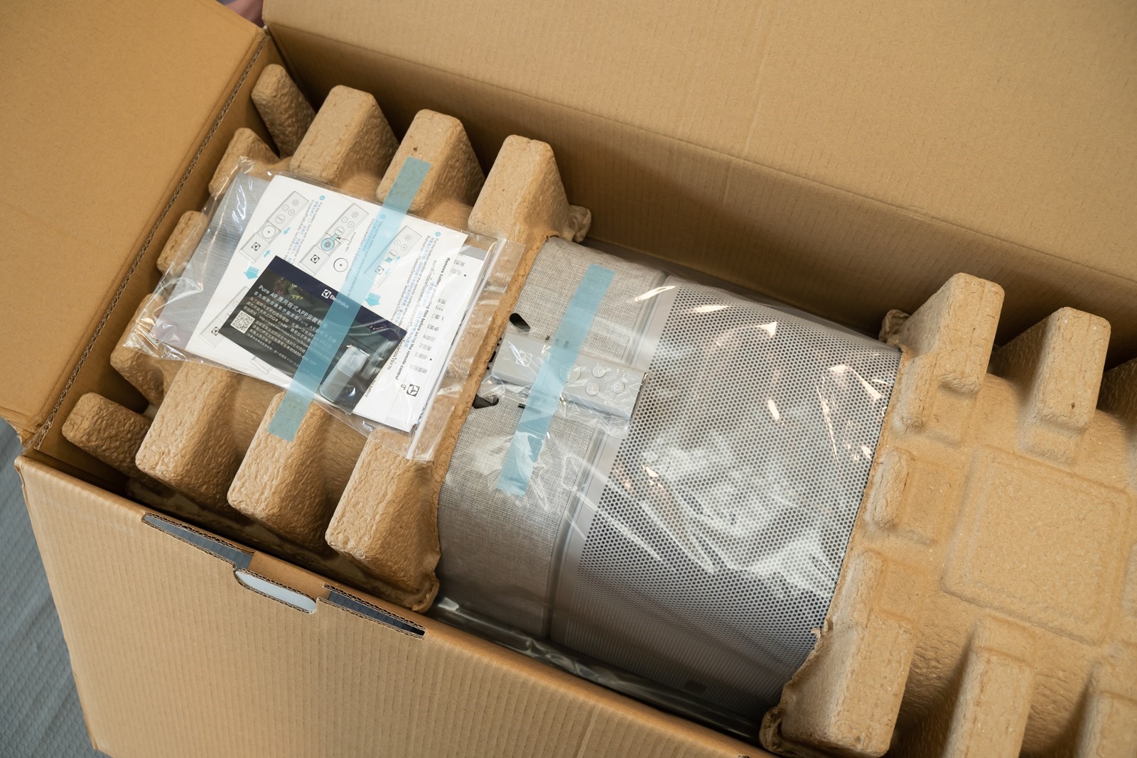 因為是全新,為了怕在存放或運送途中造成濾網平白無故的耗損,所以有包起來,外面也有請使用者取下塑膠膜的提示。等等談到濾網的部分再拆開膠膜慢慢介紹。