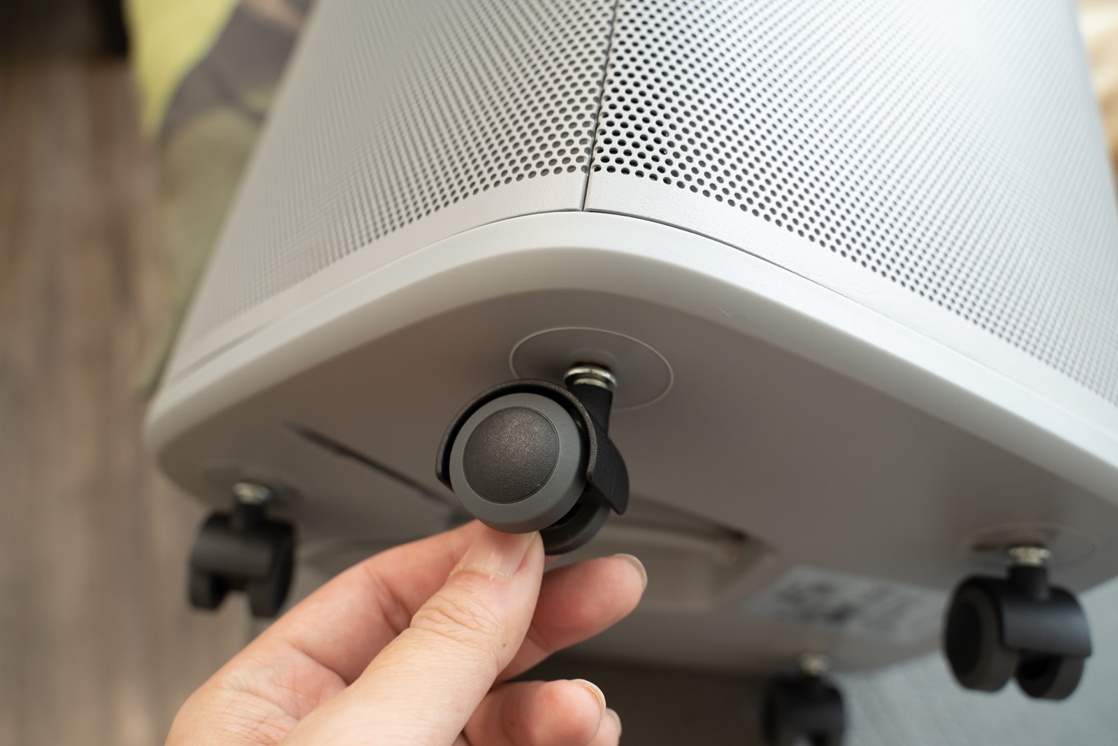 兩個鮮少被用在家電上的材質營造出的優雅感無與倫比,放在家裡都覺得氣氛尊爵不凡了起來,此外下方的網狀金屬跟萬向靜音輪更是值得推崇,這讓 PURE A9 可以自由自在地在家裡移動,輕輕鬆鬆清淨全屋,讓人活在美之中不說,更是活在安全清淨、不必擔憂汙染的空氣裡,更自在更方便。