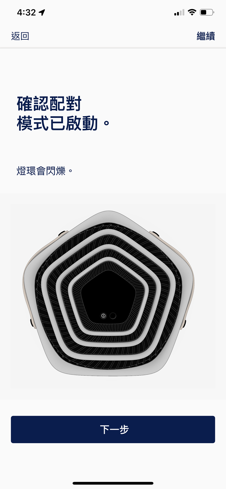 然後要介紹最讓人激賞的部分,PURE A9 可以透過 APP 掌控室內室外空氣品質,不只在出門前可以做足準備,回家前也可以預先把空氣清淨乾淨,無縫接軌的享受好空氣。最主要的是設定很簡單,只要有一支智慧裝置跟 PURE A9 就可以完成。第一步是先下載 APP 然後打開,按照步驟走,建立完帳戶後就先關閉電源再長按電源鍵。