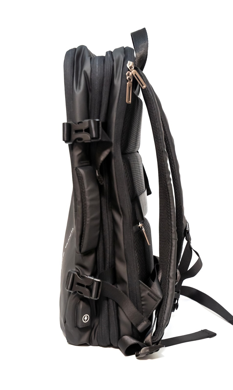 這代表什麼?表示旅行在外或是通勤途中,手機、電腦突然沒電,也不用翻開包包在重重雜物之中找出行動電源,只需要優雅輕鬆地把充電線插入 Nayo EXP 側邊的充電端就好了,對於重度 3C 使用者來說,是非常非常方便重要又聰明的設計。