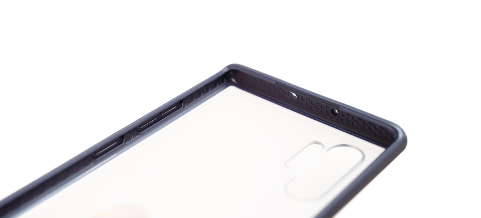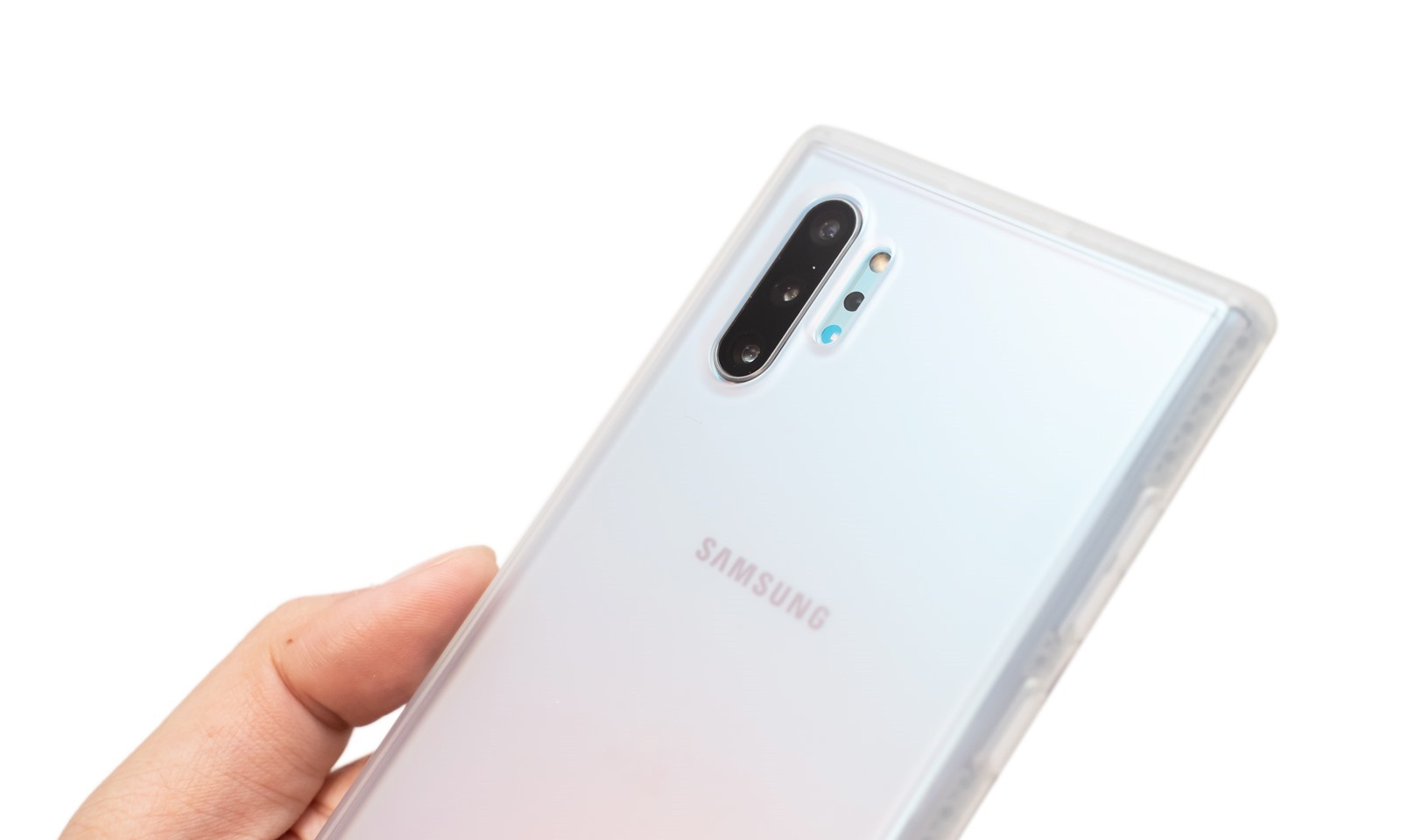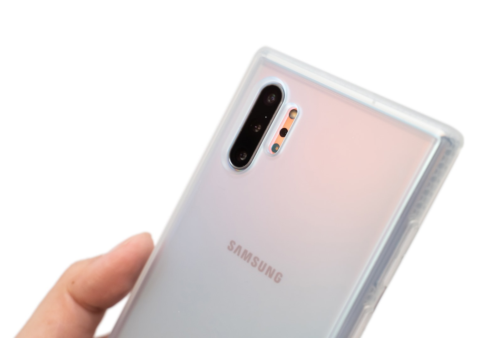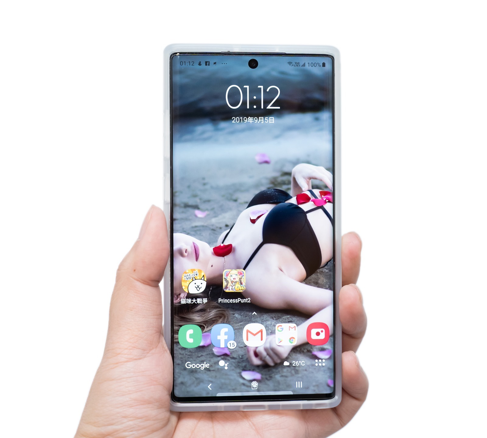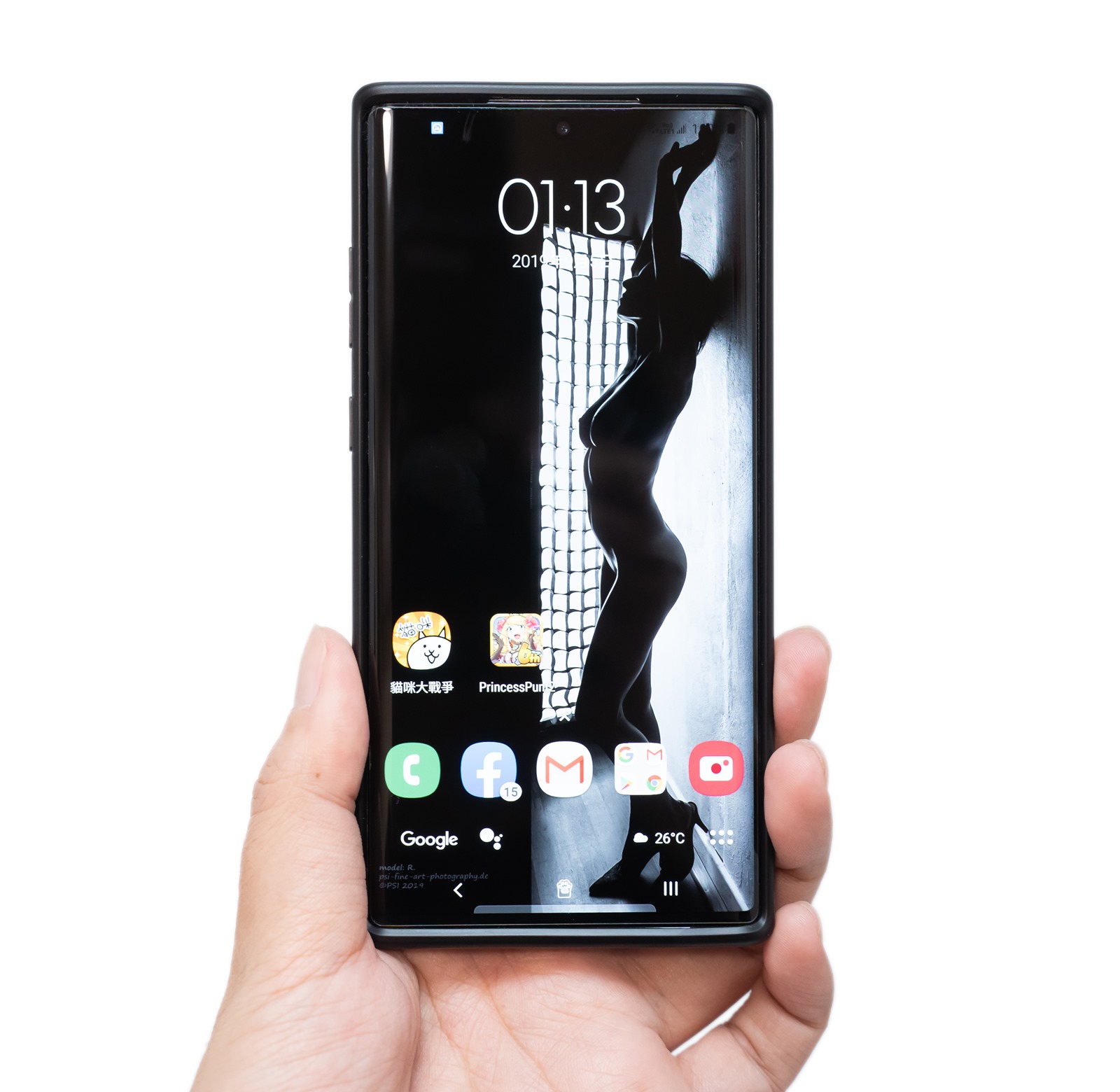 霧透的背蓋設計也可以略為透出手機原本機身的顏色與設計,例如這是 Note10/10+ 銀色機實際裝上的樣子,炫彩的顏色就會隱約顯露出來!保護殼上的 PC 膚感塗佈,滑順抗指紋,使用不留痕跡,摸起來手感又好讓人愛不釋手。