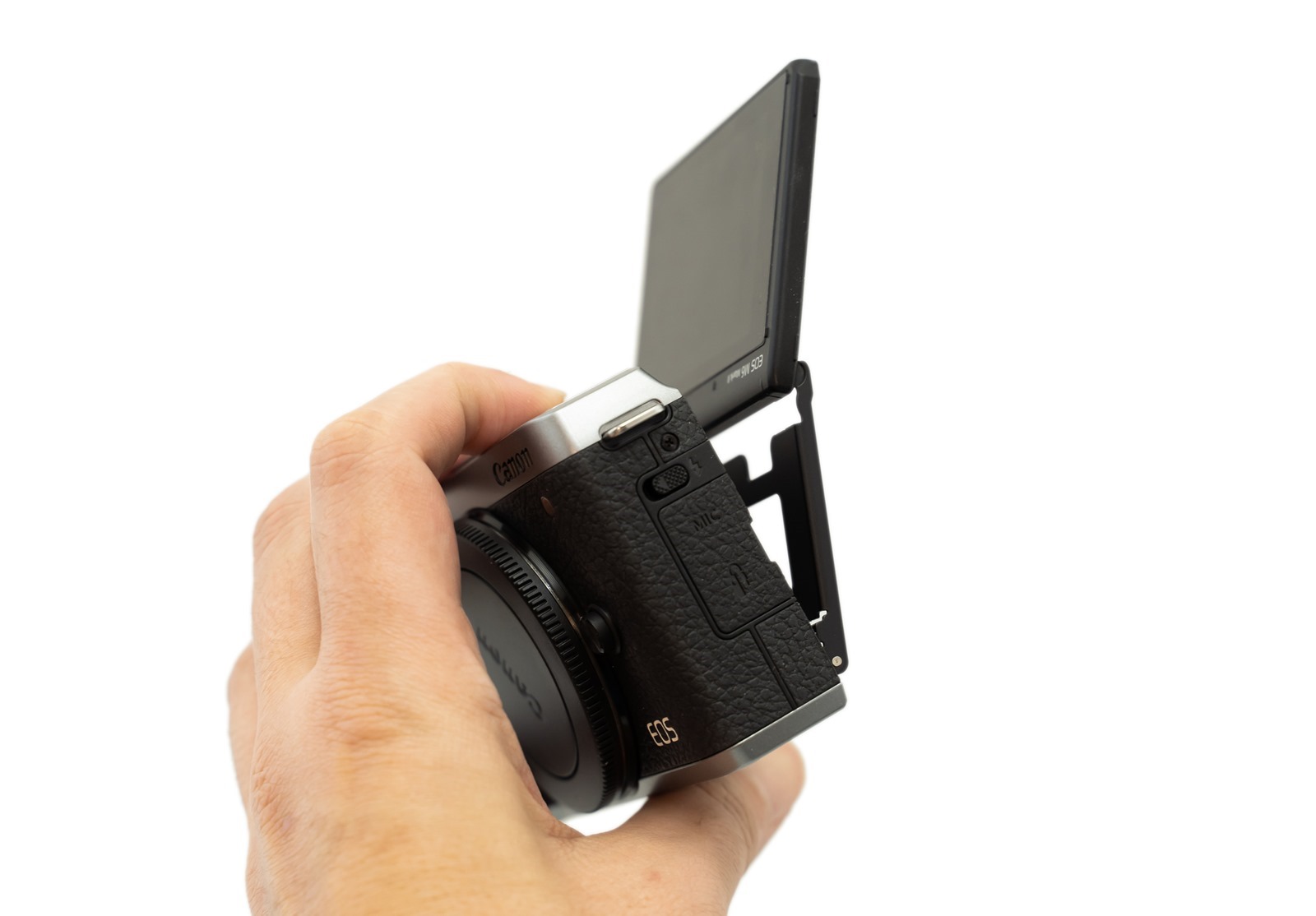 Canon EOS M6 Mark II 設計基本上大體都維持 EOS M6 的經典設計,沒有內建電子觀景窗(可另外購買安裝在熱靴上擴充),LCD 依舊是上翻 180 度的設計,認真說還是 EOM M50 的側翻轉的設計好用啊,為什麼這點要維持 EOS M6 的上掀啊啊啊啊~