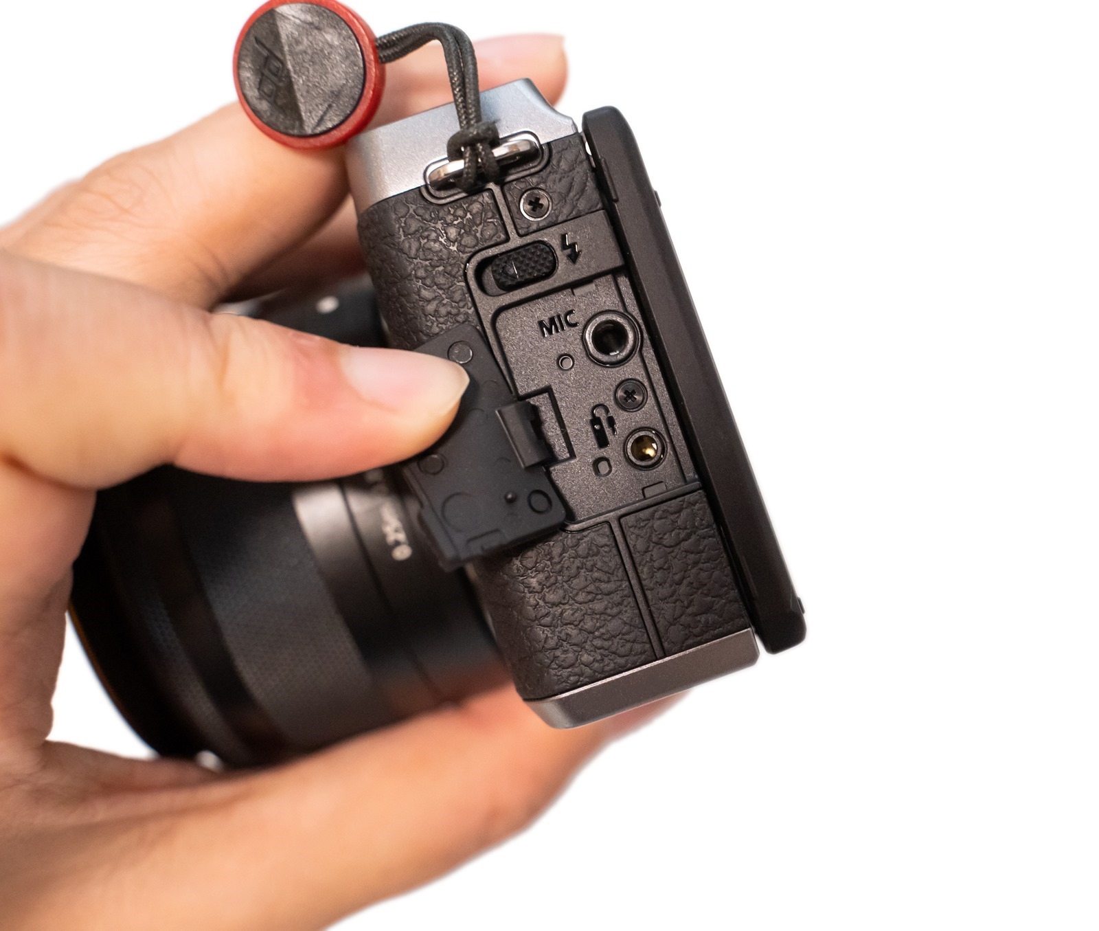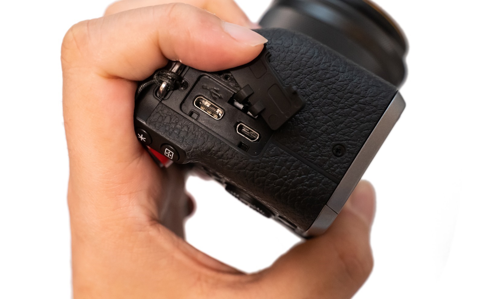 側面連接埠接口為 USB C 與 MicroHDMI,其中 USB C 接口這一次也可以直接替相機充電,不過注意不支援邊拍照邊供電,有供電需求依然要搭配假電池使用,USB C 目前僅可用於關機充電使用,不過總是還是方便多了。