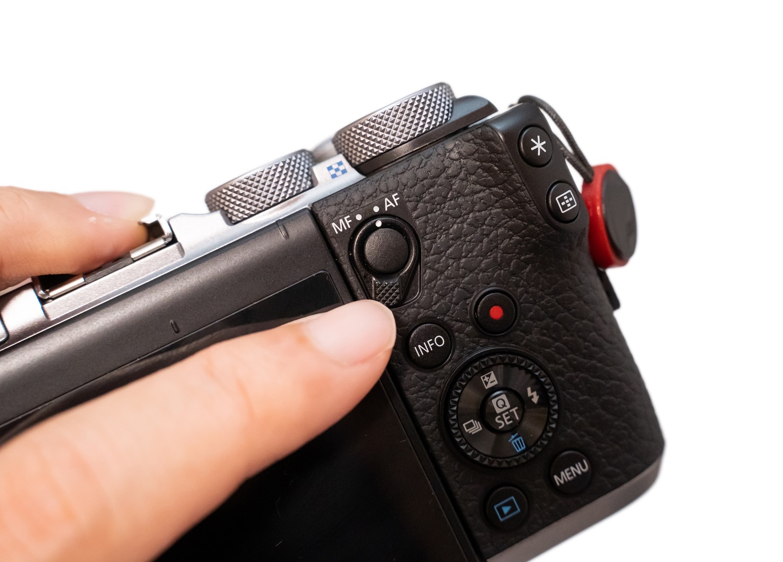 機器背面 Canon EOS M6 Mark II 則還有加入了 AF/MF 自動對焦與手動對焦的快速切換開關