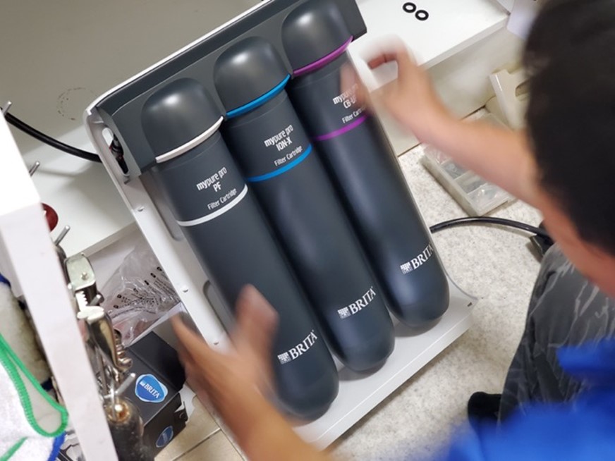 介紹完複雜的四階段專業級超微濾之後,相信很多朋友會冒出「這樣應該安裝很麻煩吧」的疑問,還有「似乎不像網路上買的那種接在水龍頭上就好的淨水器這麼簡單」的想法,在這邊阿輝要推崇一下 BRITA 不只產品優質,也考量到了消費者的煩惱,畢竟不是每個人家裡都有專業水電,所以 BRITA 提供專員免費到府安裝的服務。