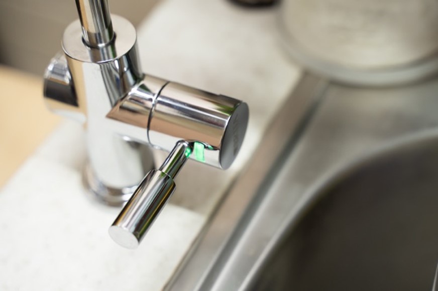 在提到水龍頭的時候,需要插播一下,以往有用過 BRITA 的人就知道,濾水壺上面會有一個自己按的 START 來開始記錄濾芯使用時間,而這次 mypure pro X9 設計了特殊的濾芯更換指示燈,與高規格 304 不鏽鋼龍頭做在一起,只要上面的燈號顏色變化,便表示該注意濾芯狀況了。