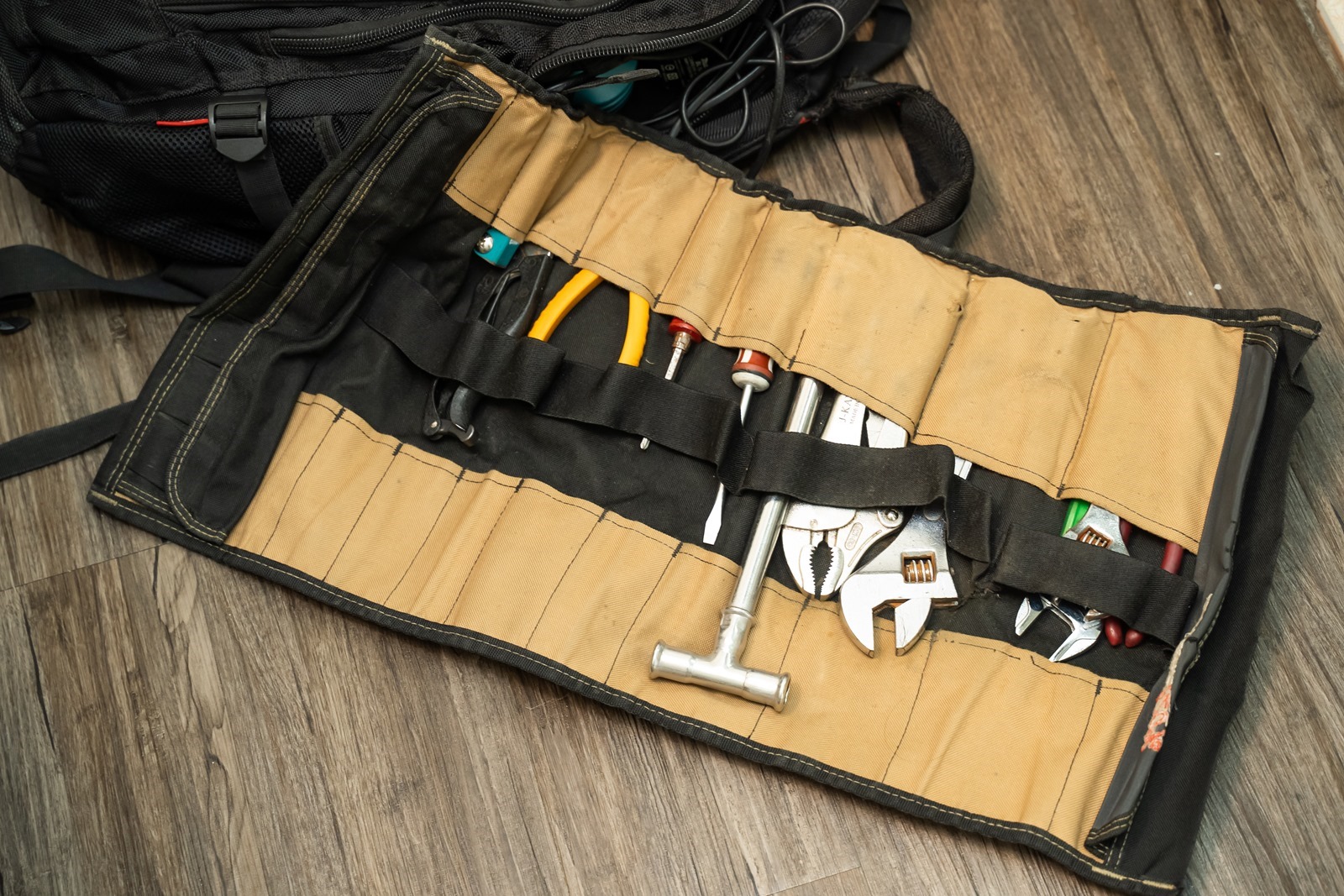 基本上阿輝看到這邊已經打消自己安裝的念頭了,身為科技宅總是有一些組裝魂,不過看到師傅像化妝師攤開化妝包一樣把工具一字排開後,突然感覺這事情還是交給專業的來吧,反正免費,不用白不用。