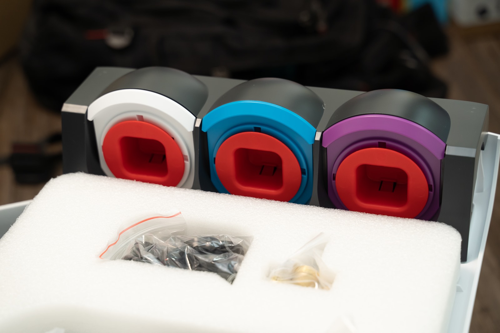 白色機身可以對開,採用磁吸結構,打開後就會看見裡面的管線以及三個濾芯的接口,這部分絕對要交給專業的來。但 BRITA 還是設計了與濾芯同色的接口防呆,很明顯考慮到有些人不知為何有免費的專業安裝不用可能會堅持要自己來,也是讓後續 DIY 換濾芯時可以用顏色去對照。