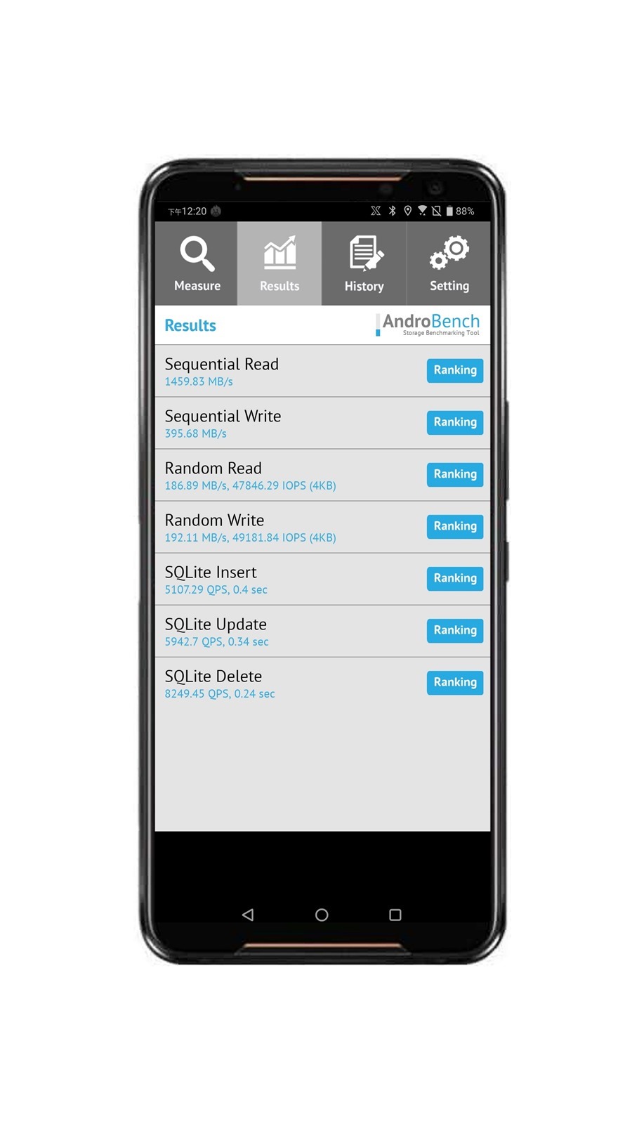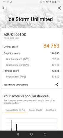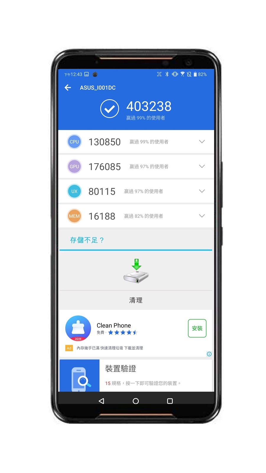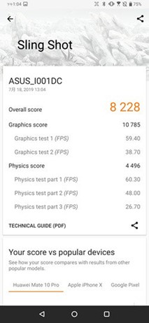 值得一提的是 ROG Phone 也是台灣首款搭載 UFS 3.0 高速儲存記憶體顆粒的手機,非常有助整體系統操作反應與遊戲的載入時間;實測可達讀取 1459MB,寫入每秒 395MB 的高速表現,高速的內建空間速度也讓 ROG Phone II 在多工等任何需要大量讀取的情況比起一般旗艦機有更迅速的反應。