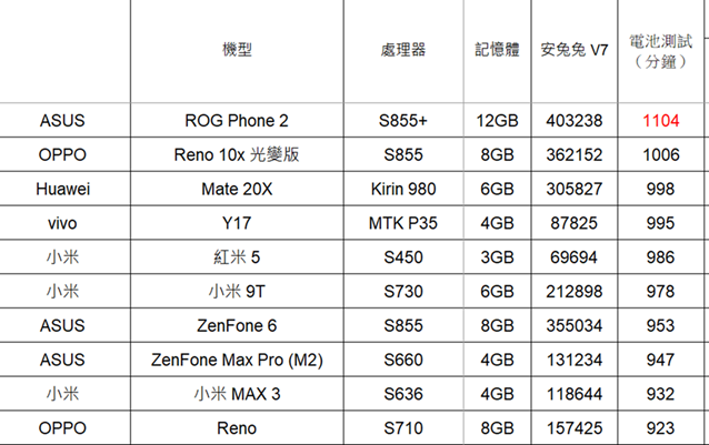 電力消耗測試方式與標準可以參考這篇說明。阿輝也整理和市場旗艦機電力比較給大家參考: