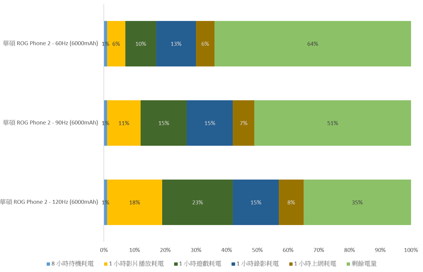- ROG Phone II 瀏覽器連續讀取瀏覽 1 小時,實際消耗 6% 電量,剩餘 64% 電量