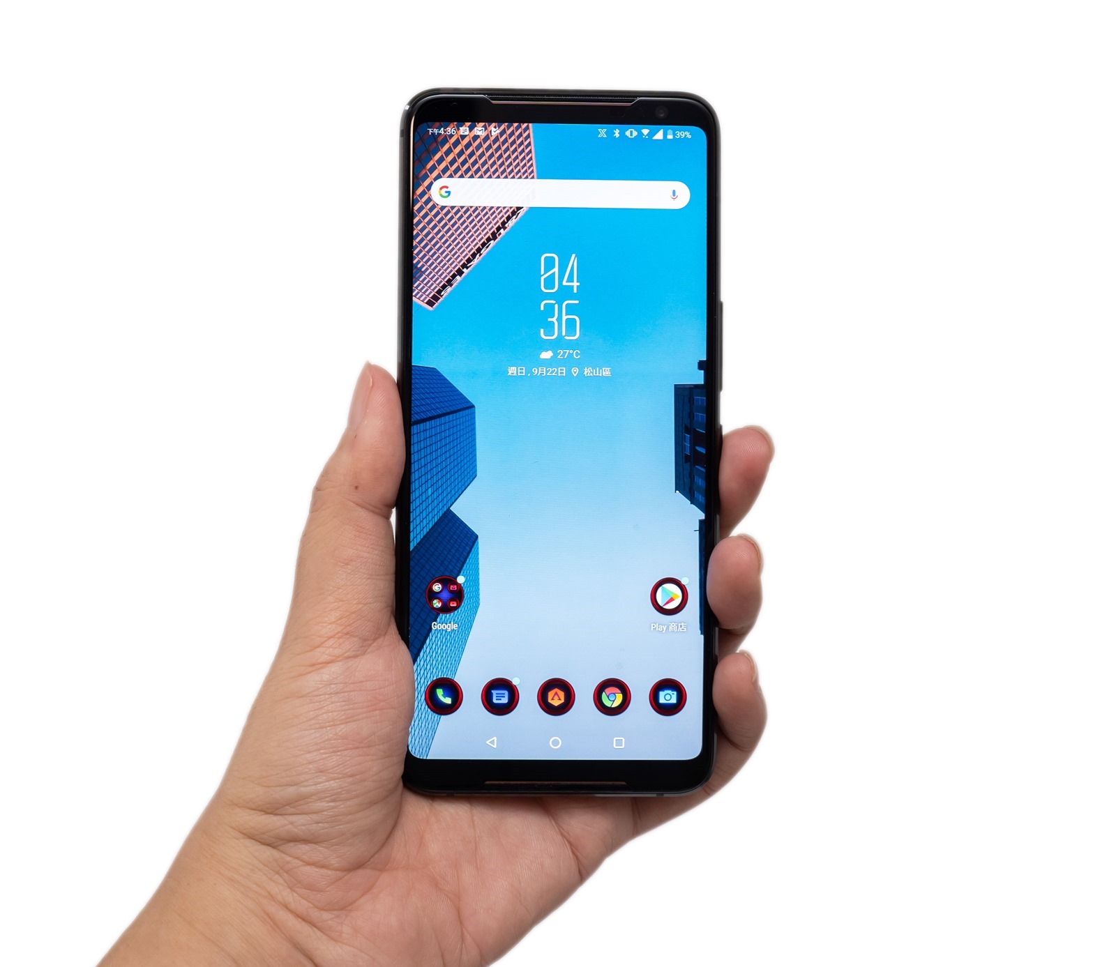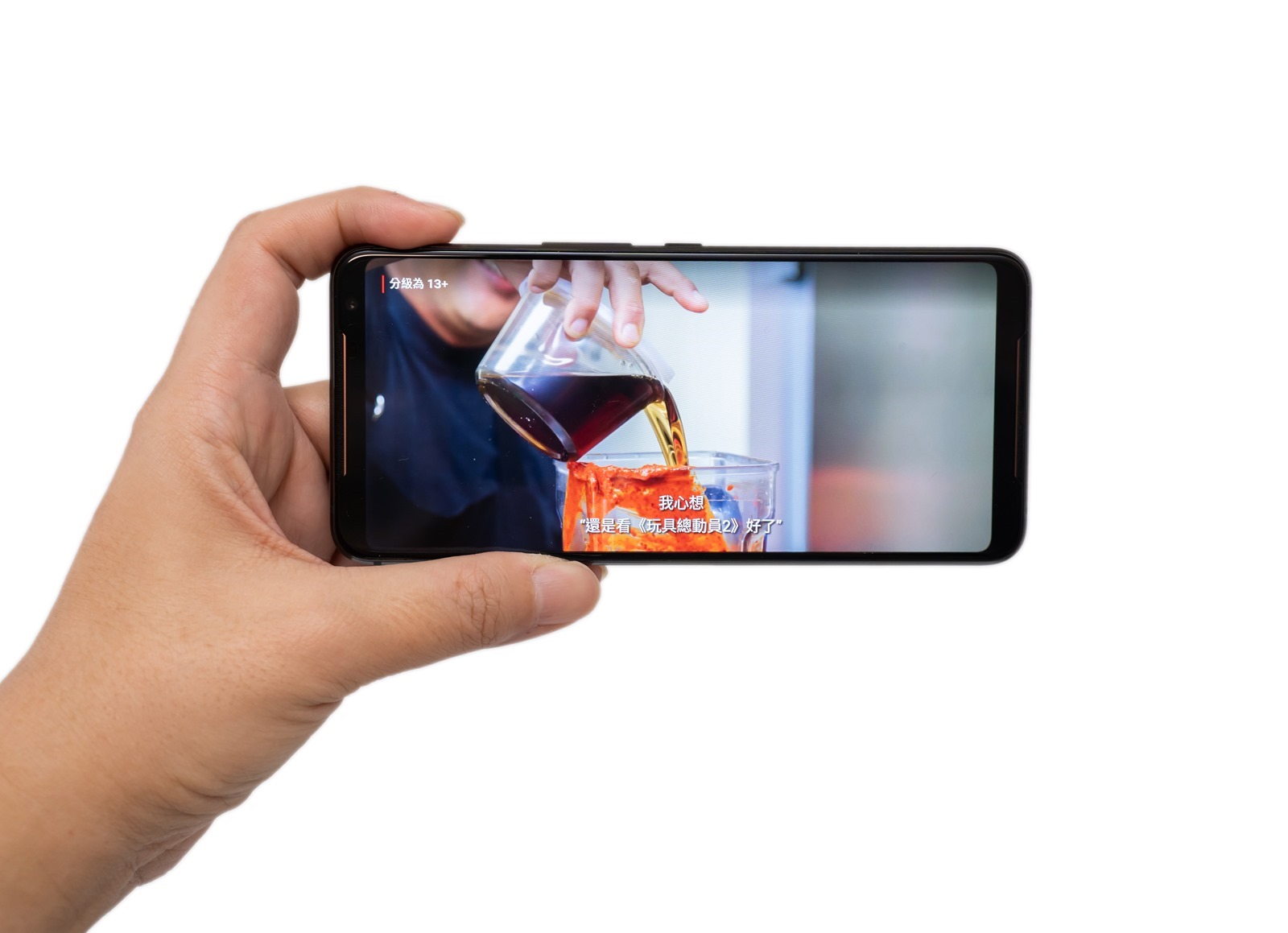 認真要說 ROG Phone II 的 6.59 吋可是個大螢幕手機,不過很大程度阿輝認為也是華碩為了遊戲玩家考慮,將螢幕盡可能推到最大螢幕的設計,畢竟大螢幕給遊戲玩家帶來的效益可以說是最明顯的,而 ROG Phone II 的機身寬度 7.8cm 也約是正常男生單手握持操作的可接受最大螢幕了。