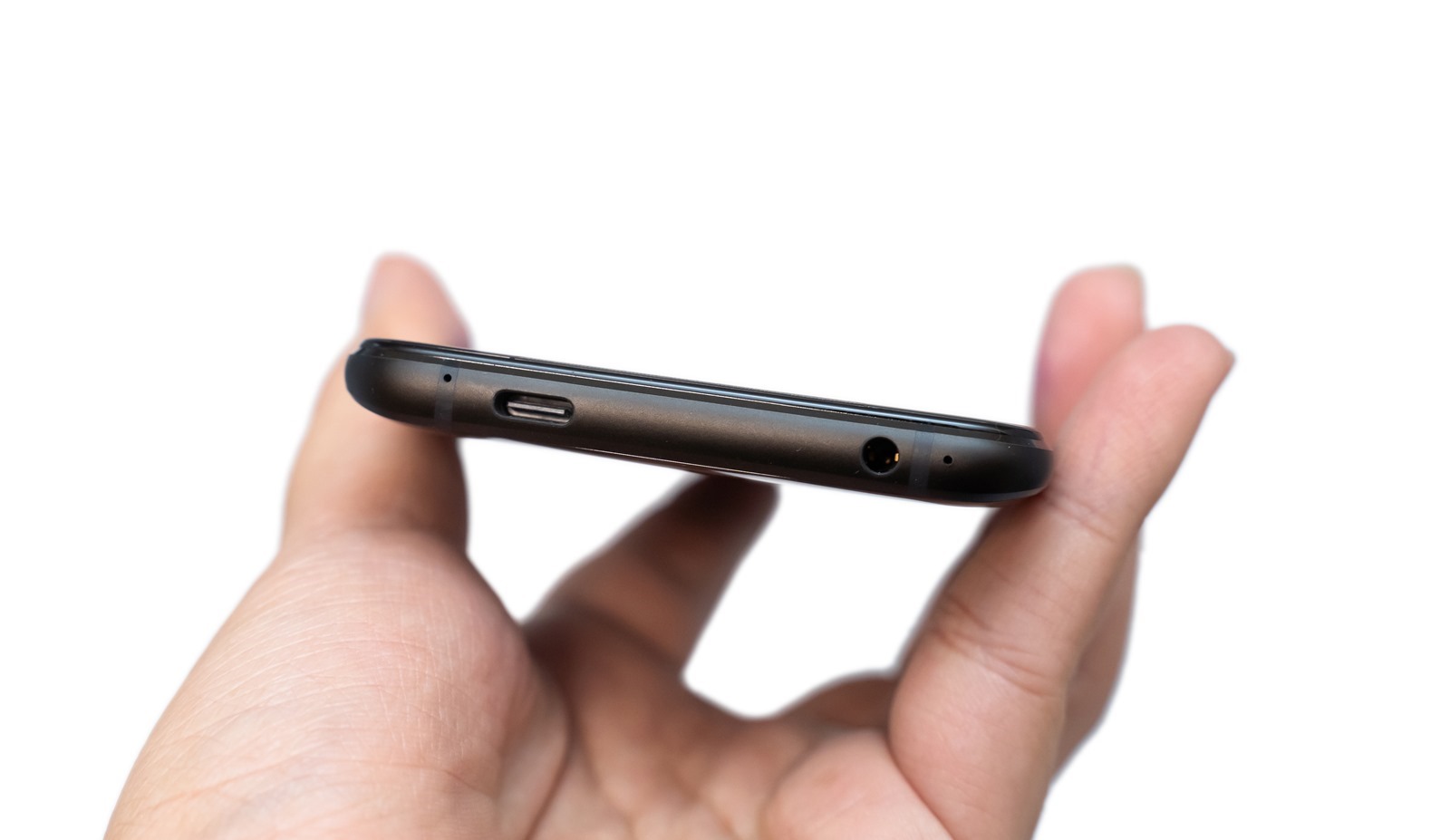 AeroActive II 空氣動力風扇正面下方有一樣支援 AURA 燈光效果的 RGB 燈,同時接上 AeroActive II 空氣動力風扇之後一樣有 USB C 可以充電或是傳輸,3.5mm 耳機孔可以接上耳機方便玩手遊不論充電傳輸還是耳機都不卡雙手。