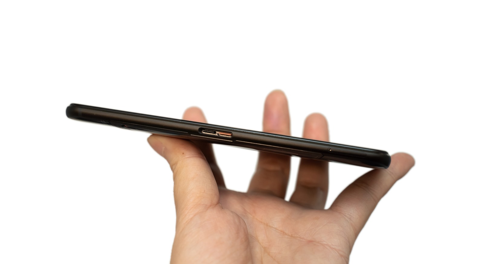 機器左側也延續受玩家好評的 Side-Mounted Port,可以用於連接 ROG Phone II 的專用週邊(之後會介紹),同時也讓玩家在手遊最常見的橫向握持時可以連接電源/傳輸線而不影響雙手的握持。 Side-Mounted Port 也有防塵塞的設計,不過是分離的設計,取下的話要小心收好別搞丟了,也因此 ROG Phone II 設計可以將這個防塵塞收納在風扇中保管,比較不容易弄丟