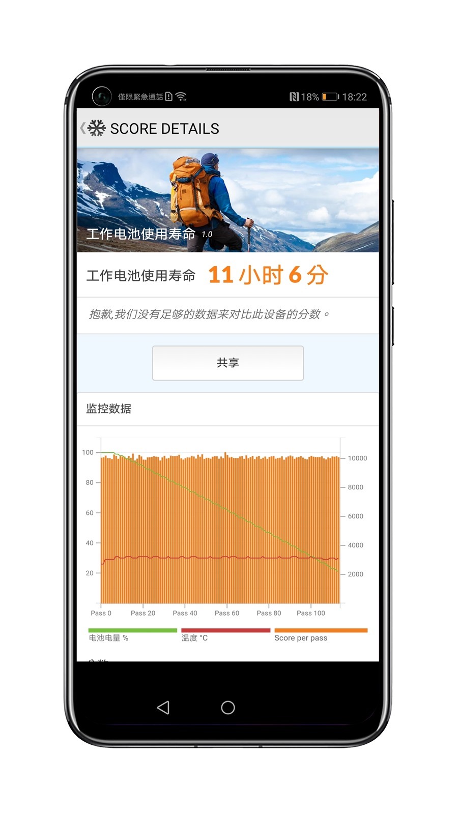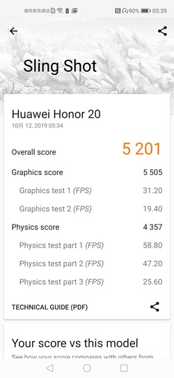 阿輝實際測試 Nova 5T 內建電池容量為 3750 mAh,實測電力部分以 PCMARK 做標準測試,測試 80% ~ 20% 間的電力運行,模擬上網、工作、遊戲的混合應用,測試結果為 11 小時 6 分鐘,測試方式與標準可以參考這篇說明。