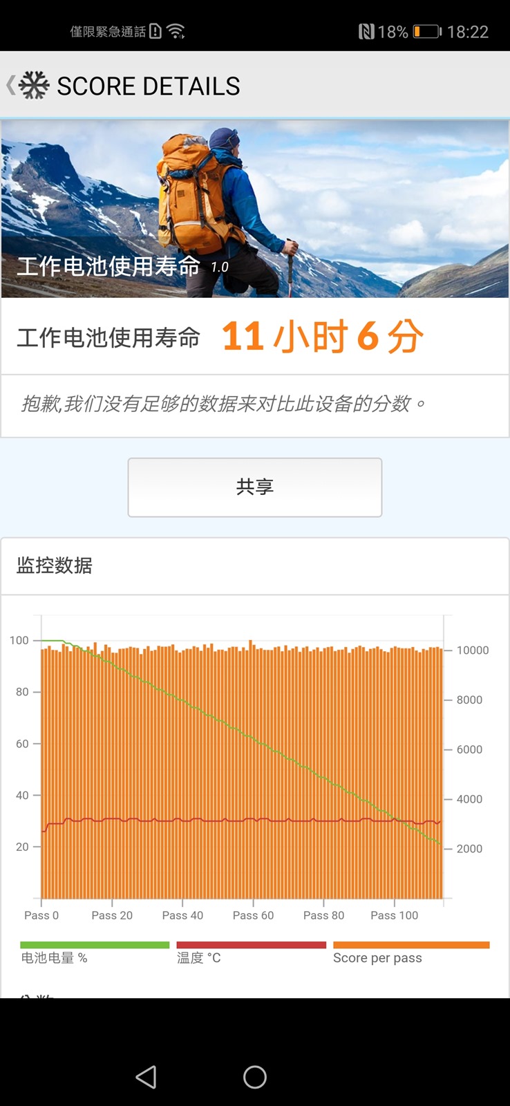 - Nova 5T 相機連續錄影測試 1 小時,實測消耗 18% 電量,剩餘 59% 電量