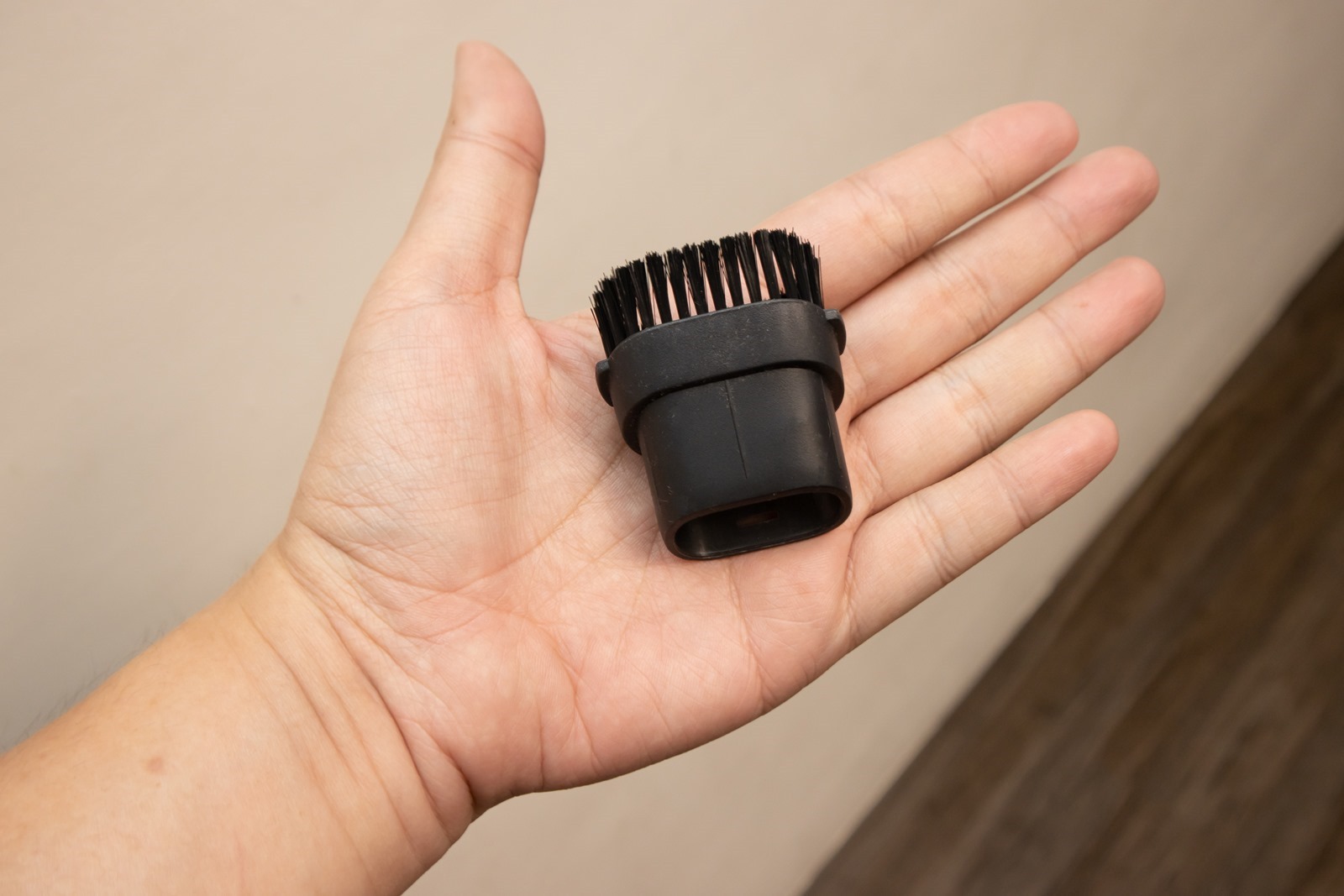 小毛刷吸頭,適合用在清潔小區塊的表面灰塵,阿輝用來清潔工作桌面和鍵盤也覺得相當便利。