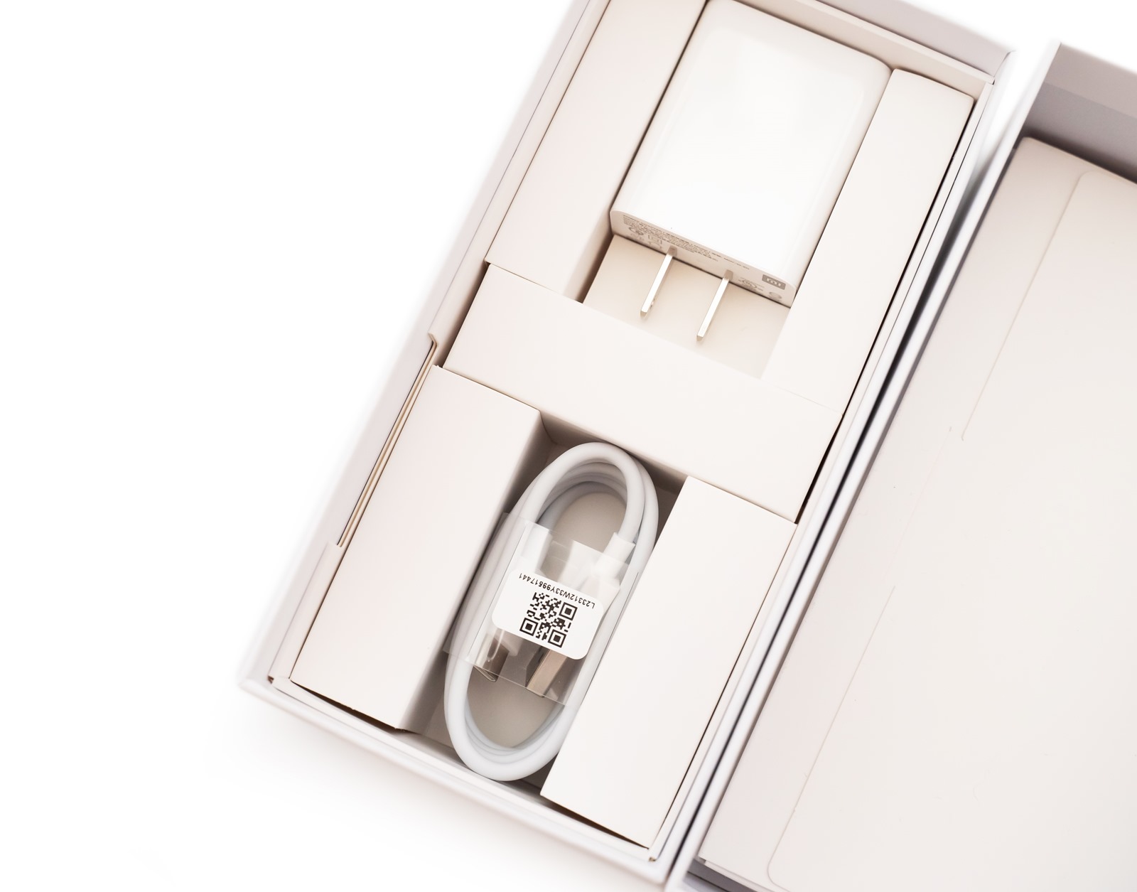盒裝配件包含了透明軟膠保護殼、充電傳輸線材、 QC 3.0 快充充電器(18W)